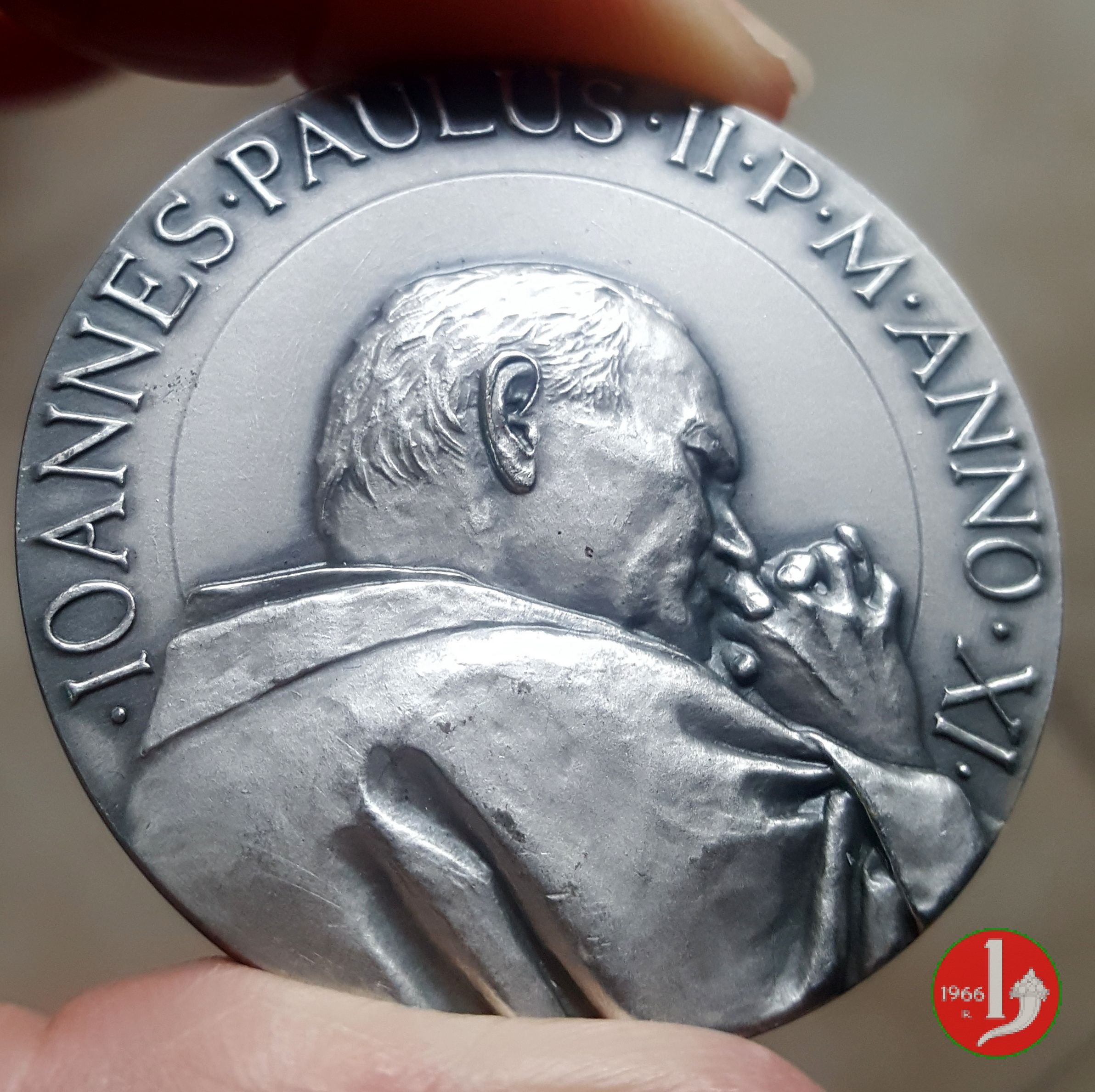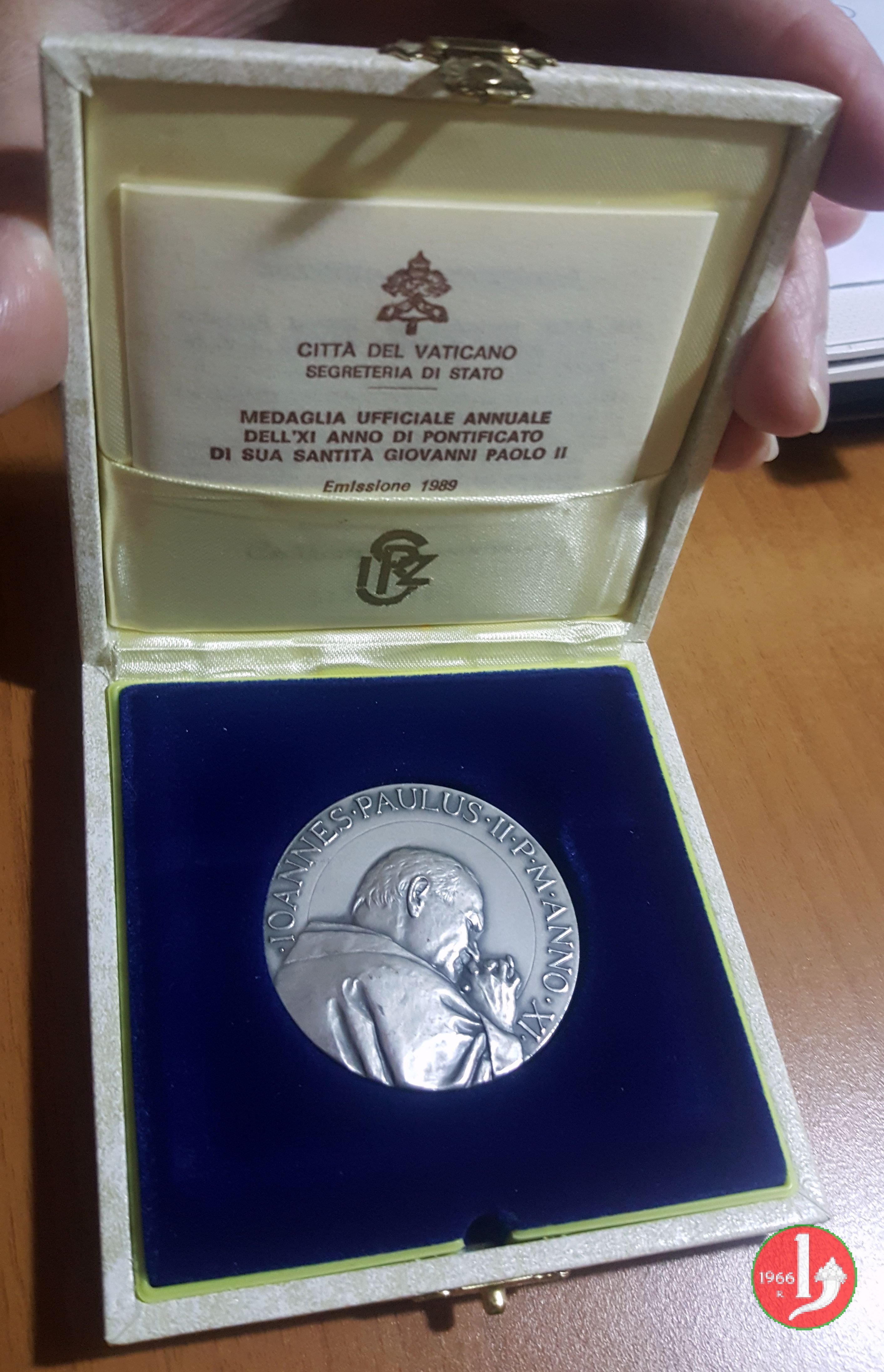 A. XI - Lettera Apostolica Mulieris dignitatem (1989 - Roma) MEDAGLIA - Papa Giovanni Paolo II - Anno XI - 1989 - CITTÀ DEL VATICANO - commemorativa Enciclica Mulieris Dignitatem - Medaglia ufficiale annuale, emessa il 29-06-1989 - - - - - - al D/ busto del Papa in preghiera verso destra - attorno: IOANNES • PAULUS • II • P • M • ANNO • XI • - - - -- al R/ La Samaritana attinge l'acqua con la mano - nel campo su due righe in corsivo: Mulieris / dignitatem - attorno la dicitura: CHI BEVE L'ACQUA CHE GLI DARO', NON AVRA' MAI PIU' SETE in basso il nome dell'autrice: PETRASSI e sull'esergo il marchio IPZS e titolo del metallo AG986 - sul contorno liscio in incuso: E CIVITATE VATICANA - e il numero della medaglia: 3192/6000 - - - - - argento - gr. 38,50 - titolo 986 - diametro 44 - pezzi coniati 6.000 - incisore Silvia Petrassi - n° 3192/6000 e dicitura E. CIVITATE VATICANA sul bordo - condizione FDC - Rif. Cat. Montenegro del 2010 n.11 a pag. 676 Dritto | Mon 2/09/13 - 14:35 | |||