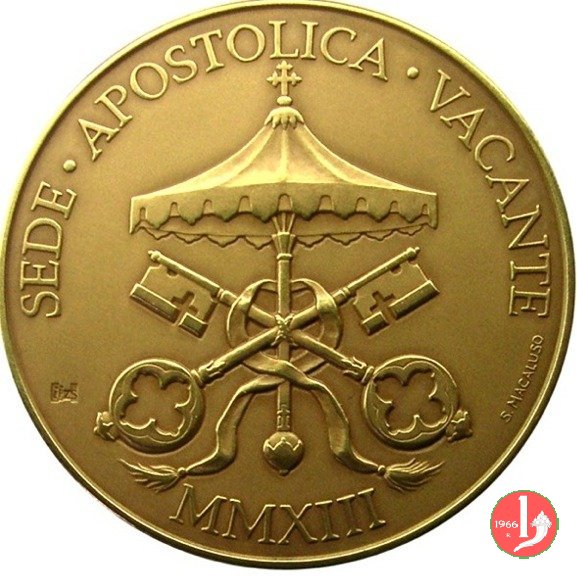 Camerlengo Tarcisio Bertone (2013 - Roma) 'MEDAGLIA - SEDE VACANTE 2013 - Medaglia coniata ed emessa per la Sede Vacante del 1963 dal Cardinale Camerlengo del Conclave Tarcisio Bertone, con fondo opaco, dallIstituto Poligrafico e Zecca dello Stato - - -- al D/ padiglione (antico simbolo pontificio) su chiavi decussate (quella a destra d'oro e l'altra a sinistra d'argento espressione dell'autorità di Cristo che viene trasmessa a Pietro ed ai suoi successori) - attorno nel semicerchio superiore la diciotura: SEDE • APOSTLOLICA • VACANTE • MMXIII - di lato sulla destra il nome dello scultore: S.MACALUSO e a fianco all'interno di un ovale il titolo del metallo: 986 - di lato a sinistra il marchio dell'IPZS - - - -- al R/ sormontato da croce e galero a quindici nodi, riproduzione dello stemma del Card. Tarcisio Bertone, Camerlengo di Santa Romana Chiesa, sotto cui il motto su nastro: FIDEM CUSTODIRE CONCORDIAM SERVARE - intorno la scritta: • THARSICIUS • CARD • BERTONE • S • R • E • CAMERARIUS • - in basso divisi dall'asta della Croce i nomi degli incisori: a sinistra I.COLANTONI - a destra S.FERMANELLI - - - sul bordo liscio in incuso la scritta E CIVITATE VATICANA ed il numero della medaglia con frazione 3000 (numero degli esemplari coniati) - - argento - peso gr. 31,95 - diametro mm. 40,00 - spessore mm. 3,00 - condizione FDC (R) Verso | Sat 22/06/13 - 18:39 | ||