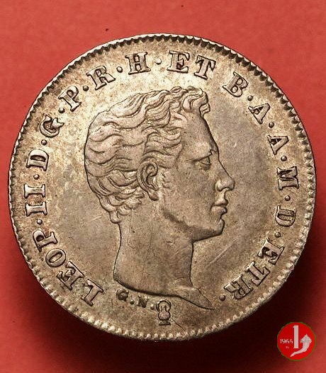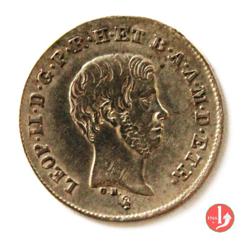 fiorino (secondo tipo) (1842 - Firenze) moneta conosciuta in pochissimi esemplari - legenda al D/ LEOPOLDO II • A • D'A • GRANDUCA DI TOSCANA (D) Dritto | Fri 11/01/13 - 11:14 | |||