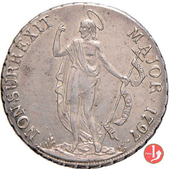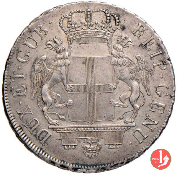 8 lire nuove (1796 - Genova) 8 Lire Nuove, Repubblica di Genova, Periodo dei Dogi Biennali, III Fase, 1796* (AG con San Giovanni Battista), Sigillata NIP F. Cavaliere SPL Ottimo. Verso | Fri 12/02/16 - 20:02 | |||