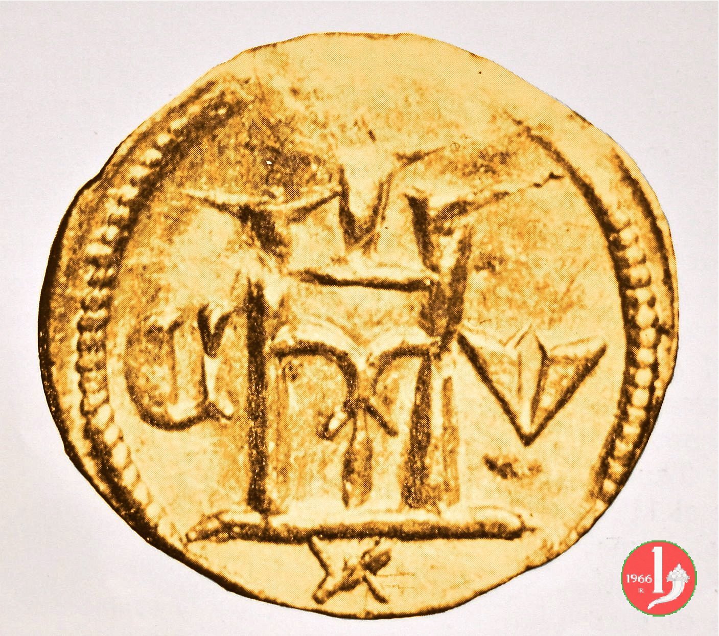 Denaro prototipo (1139-1140 - Genova) fatografia tratta dall'articolo "Il ripostiglio di Padru" di Monica Baldassarri (R) Verso | articolo ripostiglio di Padru | Wed 22/11/23 - 11:32 | ||