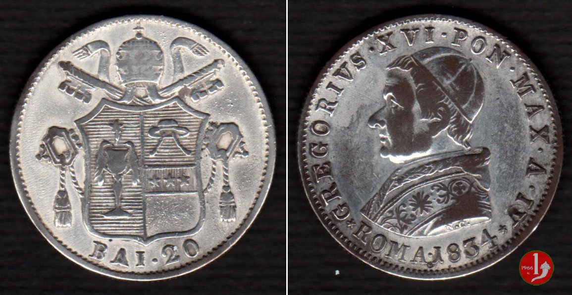 20 Baiocchi (1/5 di Scudo, Doppio Giulio, Papetto) (1834 - Roma) | Sat 18/10/08 - 15:08 | |||