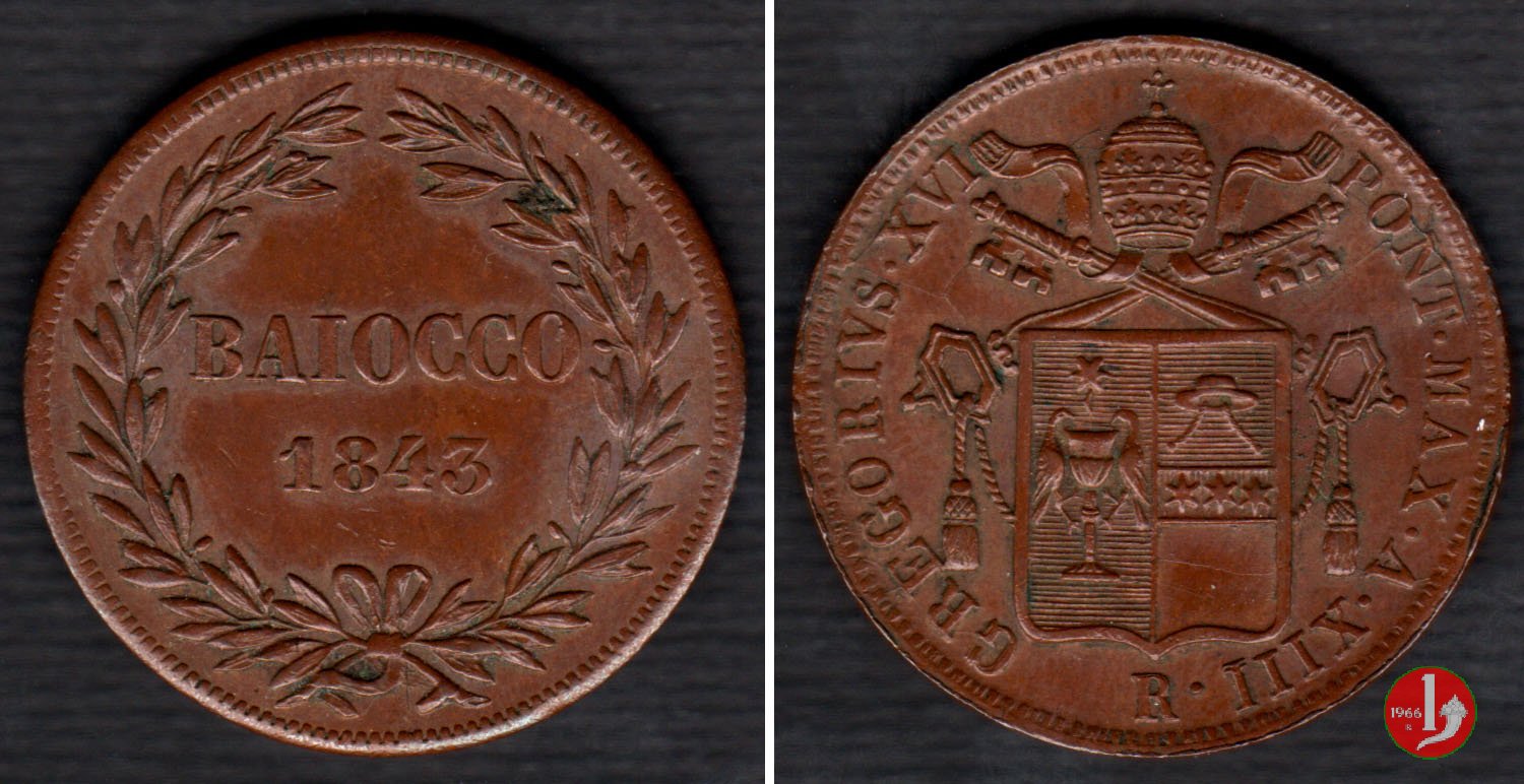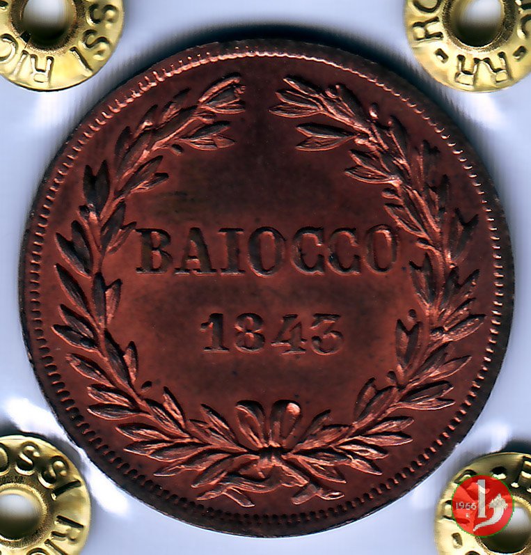 Baiocco (1843 - Roma) Al R/ Corona di olivo piú CHIUSA; al D/ punto dopo segno zecca ALTO, lettere legenda piú COMPATTATE. | Tue 27/01/09 - 23:22 | |||