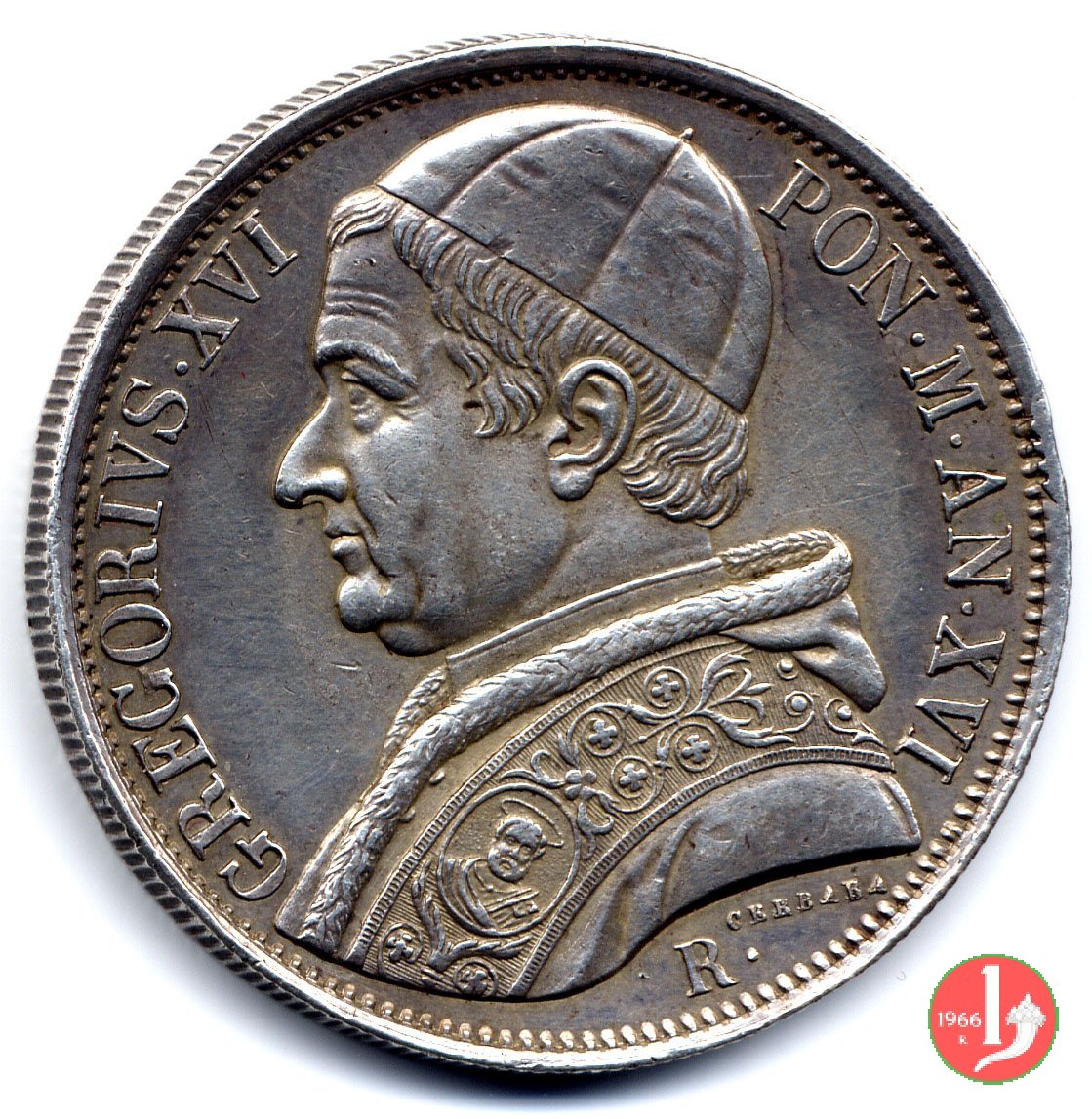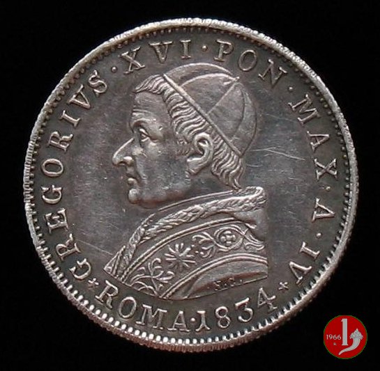 5 Scudi Romani o Gregorina (1834 - Roma) Ex Collezione Reale (R) Verso | MNR | Fri 21/11/08 - 18:24 | ||