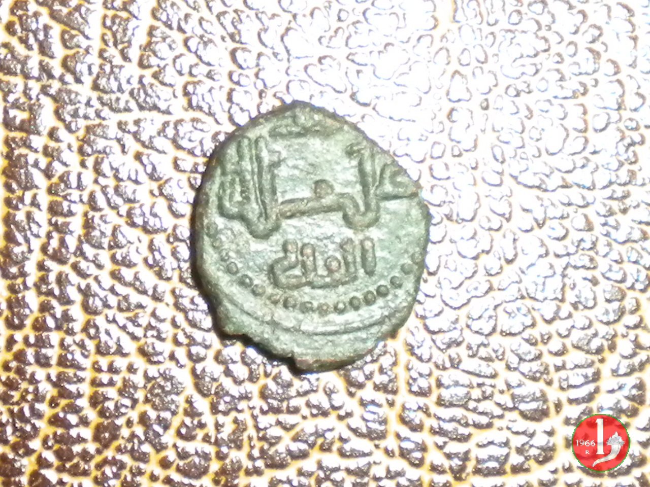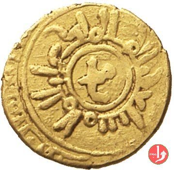 Quarto di tercenario (Palermo) D/ In centro croce in cerchio lineare, intorno legenda cufica Battuto nella città di Sicilia con laiuto di Dio. R/ qVART / ATERCE / NARII