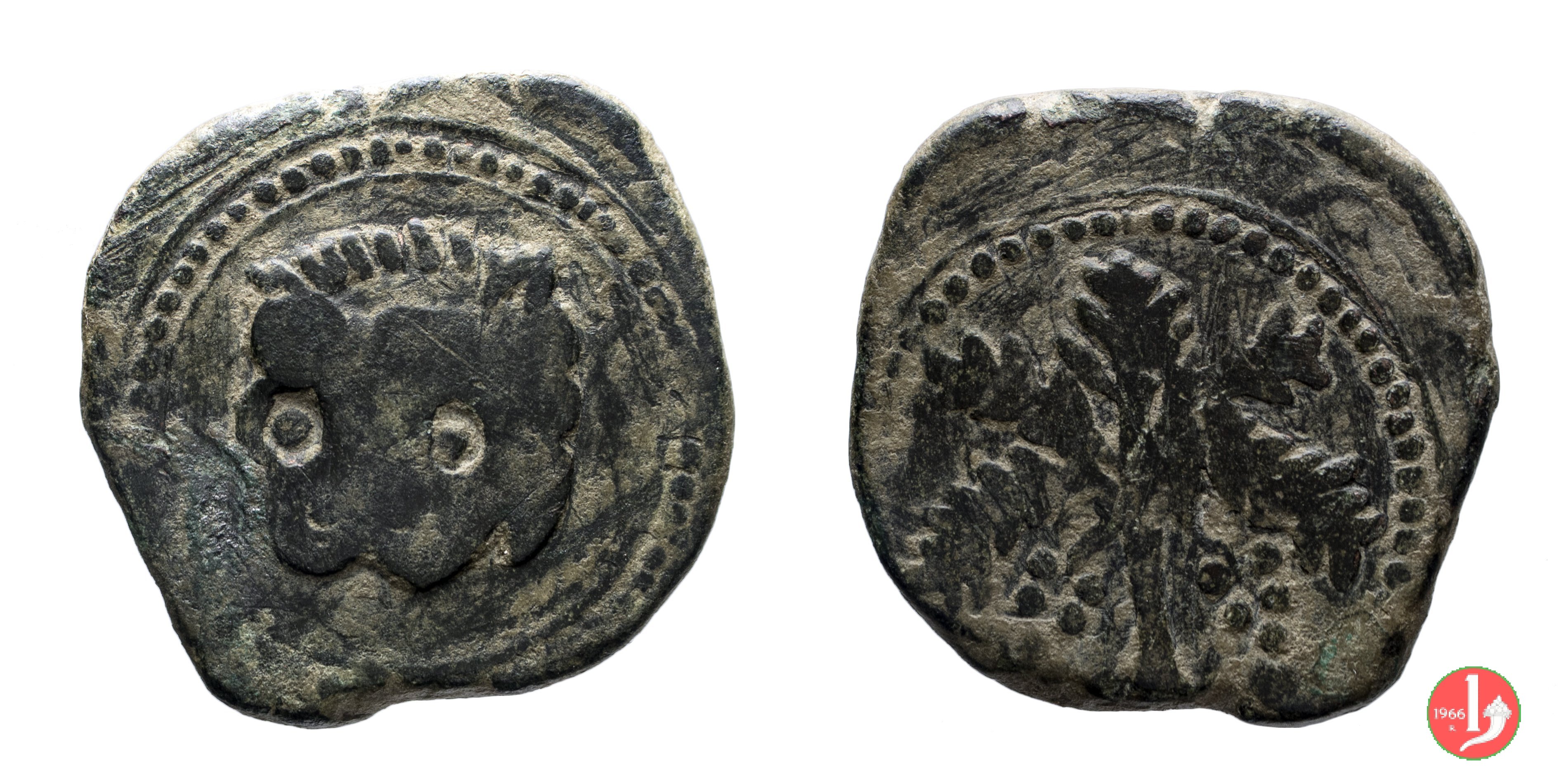 Trifollaro (Messina) D/ Testa di leone in un cerchio di perline. R/ Palmizio con datteri in campo; cerchio di perline ed altro cerchio lineare. (D) | Fri 20/01/12 - 21:48 | |||
