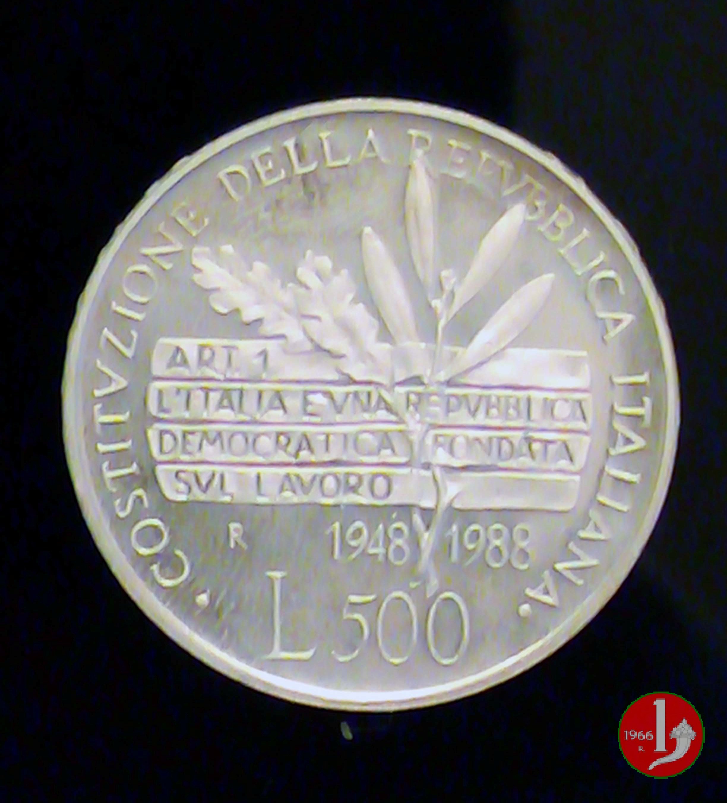 500 lire Costituzione della Repubblica Italiana (1988 - Roma) Collezione spillo72 Dritto | anonimo | Sun 31/12/23 - 17:29 | ||