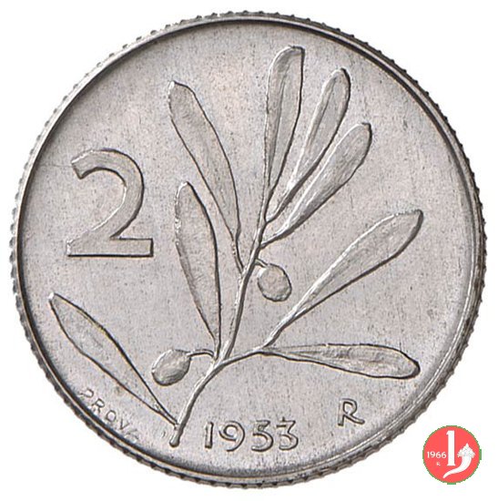 prova 2 lire 1953 (1953 - Roma) Nomisma 56 - lotto 2201 Verso | Nomisma | Sat 21/10/17 - 14:43 | ||