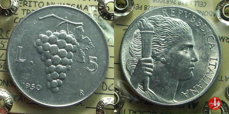 5 lire uva (1950 - Roma) Entrambe le facce | Mon 9/01/12 - 00:03 | |||