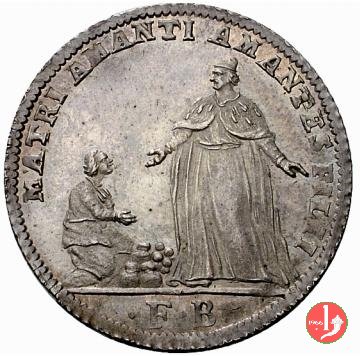 Osella 1794 di doppio peso (1794 - Venezia) Venezia in piedi col corno dogale in capo tra due are stringe nella destra una croce e nella sinistra uno specchio con una serpe attorcigliata. La croce simboleggia la fede, il serpente la saggezza, i due pilastri della Repubblica. Lo specchio in quanto superficie riflettente è il supporto di un simbolismo estremamente ricco: lo specchio riflette la sincerità, il con- tenuto del cuore e della coscienza, la verità. (Traina) Dritto | Mon 25/04/22 - 21:25 | |||