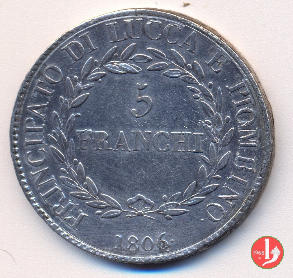 5 franchi (1806 - Firenze) 5 Franchi Elisa Bonaparte & Felice Baciocchi, 1806 Principato di Lucca & Piombino, Sigillo Zamboni, BB+ Verso | Sat 26/01/13 - 20:03 | |||