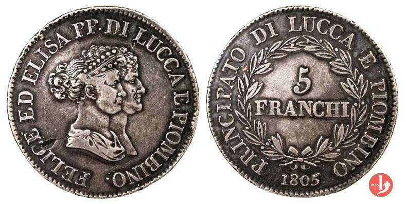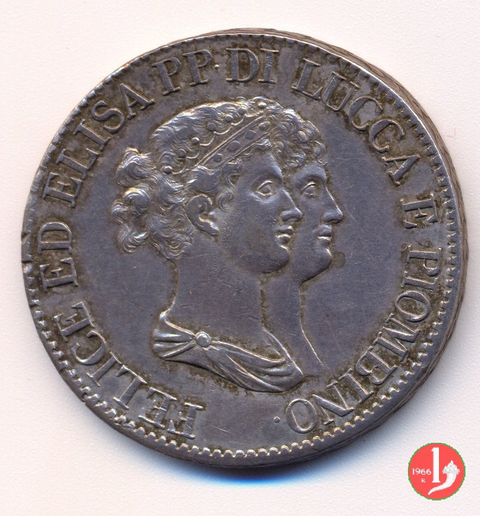 5 franchi (1806 - Firenze) 5 Franchi Elisa Bonaparte & Felice Baciocchi, 1806 Principato di Lucca & Piombino, Sigillo Zamboni, BB+ Dritto | Sat 26/01/13 - 20:03 | |||