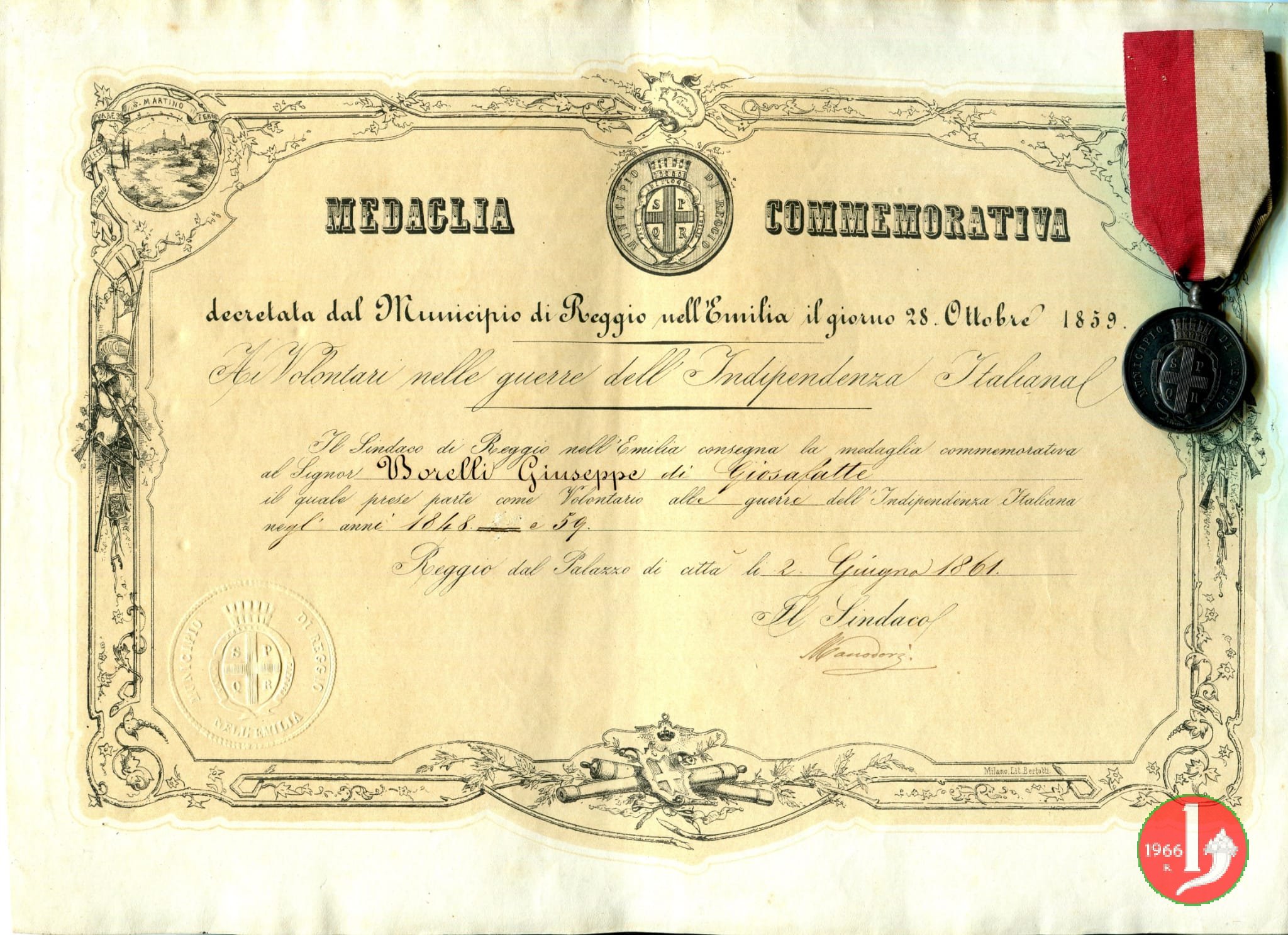 Reggio ai volontari 1859 (1859 - Torino) Dives srl - DIVESMILANO MEDAGLIA CON DIPLOMA | anonimo | Mon 14/08/23 - 11:45 | ||