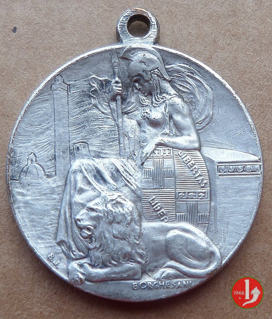 Impresa di Fiume-Eia Patria del Carnaro -C11 (1921) Placca commemorativa della reggenza del Carnaro, in bronzo, recante il profilo di Gabriele d’Annunzio , firmata Giannino Castiglioni, 1921, esemplare numerato 276 sul bordo. La placca di forma rettangolare, conio Johnson, incisa da Enrico Farè, al recto ritrae il Vate con berretto alpino ed in divisa da comandante di Reparti d’Assalto – Arditi che incita EIA PATRIA DEL CARNARO ALALA’! Al verso il soldato ardito italiano, che difende una donna (la città di Fiume) brandendo un pugnale a sfidare le serpi nemiche della città di Fiume e della causa della sua annessione all’Italia. Sullo sfondo la costellazione dell’Orsa Maggiore, ed in cima la promessa del legionario DI LA’ DA OGNI INGOMBRO – DI LA’ DA OGNI OSTACOLO – COL COMANDANTE Verso | Wed 3/04/24 - 20:12 | |||