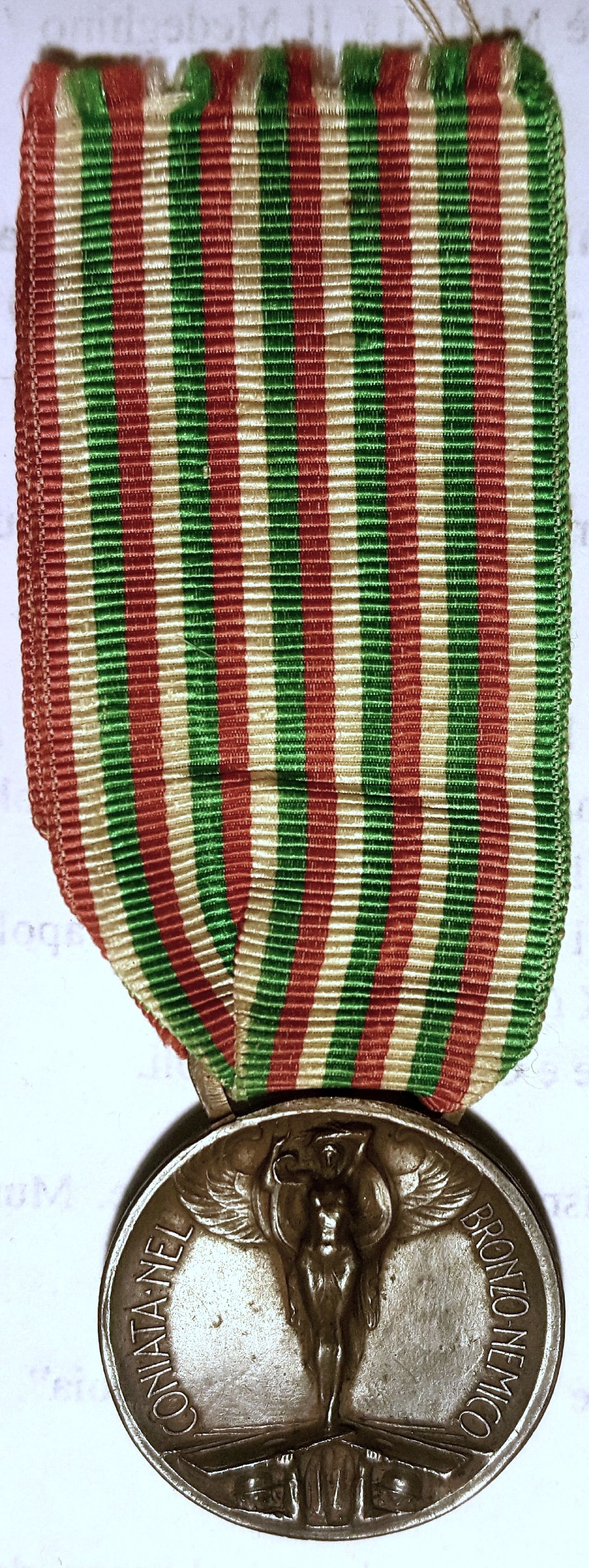 Ai Volontari di Guerra (1918) completa di nastro di seta originale di colore rosso solferino. con barretta 1916 e fregio A.N.V.G (B) Dritto | anonimo | Tue 28/05/19 - 11:58 | ||