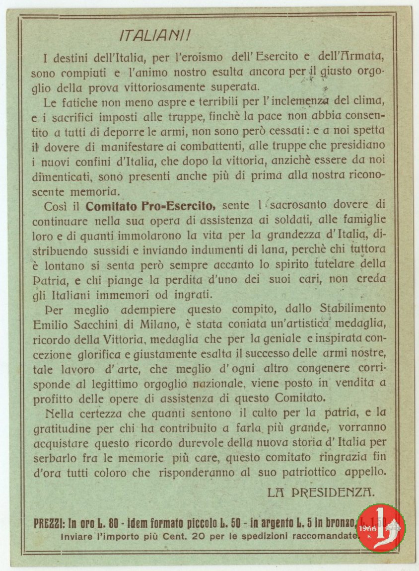 Pro Esercito - Vittoria per Trento e Trieste (1918) Verso | Fri 16/11/12 - 18:08 | |||