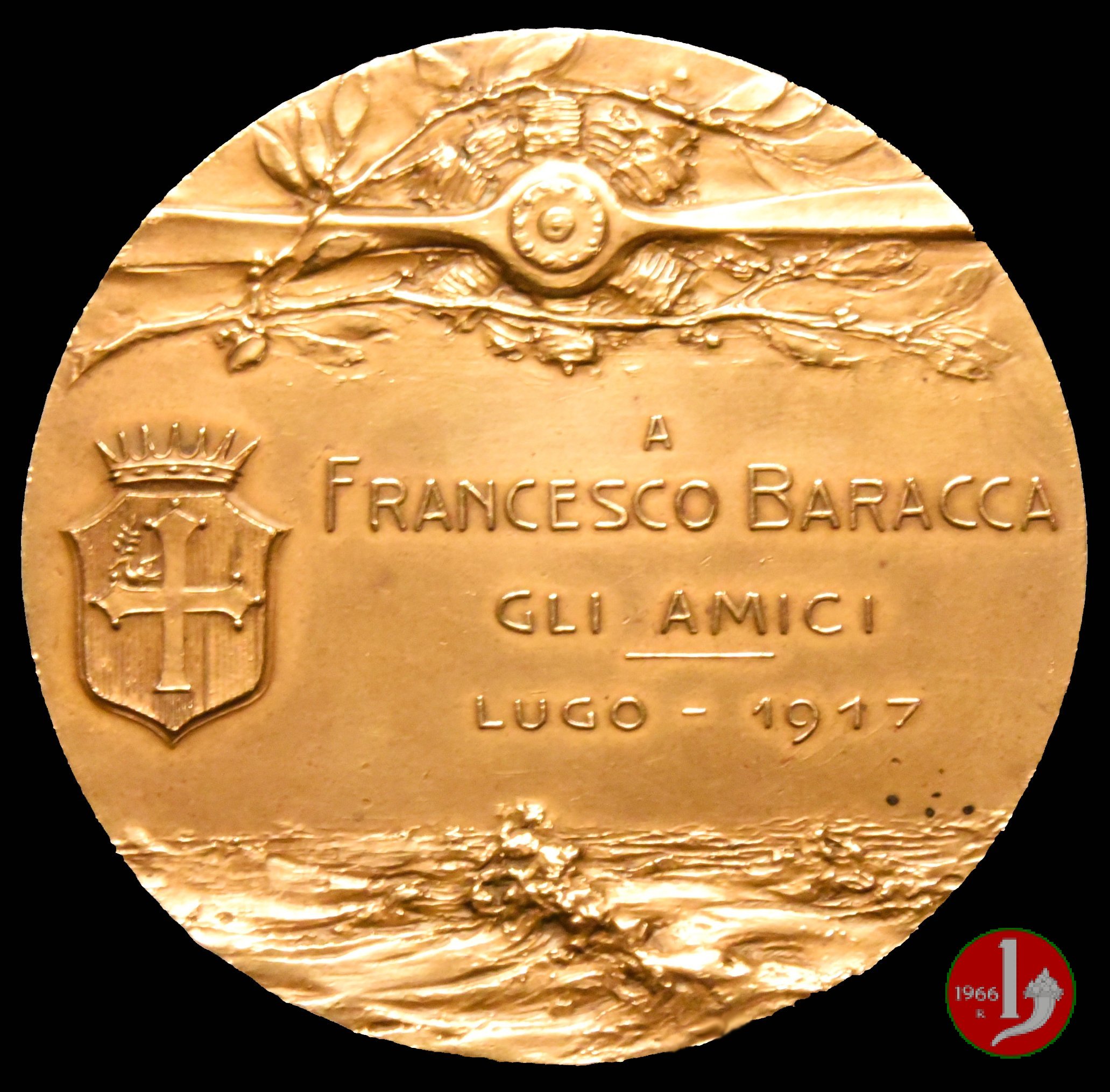 Francesco Baracca 1917 (1917) Invio immagini della medaglia dedicata a Francesco Baracca, presente nelle mia collezione. Cordiali saluti. Fabio Negrino (R) Verso | Sun 30/10/22 - 19:06 | |||