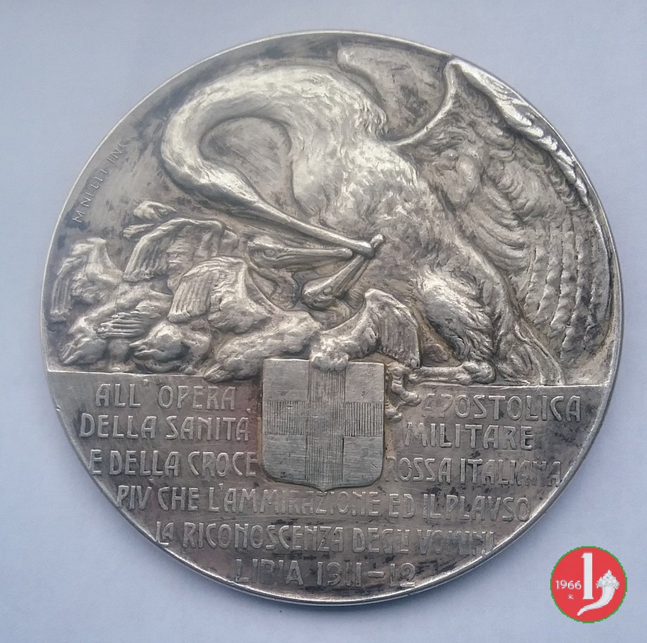 Sanità Militare - CRI Libia (1912) "Del medagliere, per assicurargli anche un pregio di rarità, non si tireranno OLTRE DUEMILA ESEMPLARI in bronzo e Cinquanta in argento massiccio [...]. da Medagliere Artistico-Storico della Conquista della Libia. Eseguito a cura dello studio ed Officina d'arte Cav. Mario Nelli Firenze (tip. Rinaldi & Ciani- Firenze) | Sat 1/09/18 - 09:13 | |||