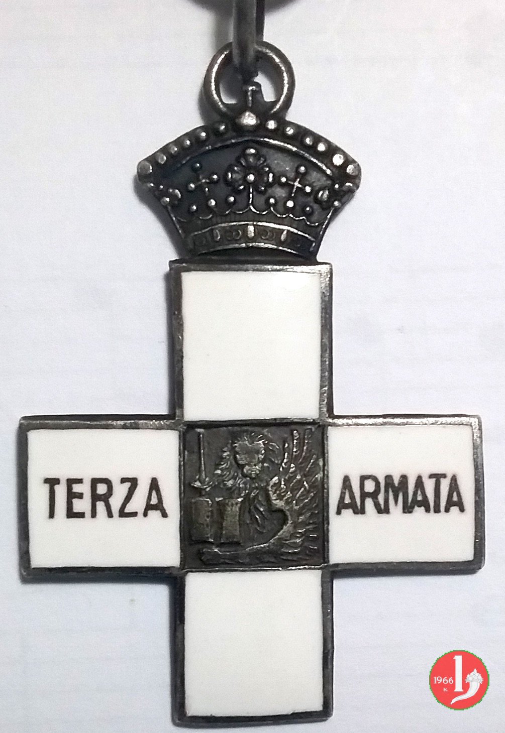 Croce Terza Armata (1918) Croce III Armata in argento. Produzione privata di dimensioni leggermente maggiori rispetto al modello Fassino. La scritta all'interno dell'anello agganciato alla croce "ORO ALLA PATRIA" ci parla di una originale croce in oro appartenuta ad una personalità di alto rilievo militare o istituzionale. | Wed 5/09/18 - 14:04 | |||