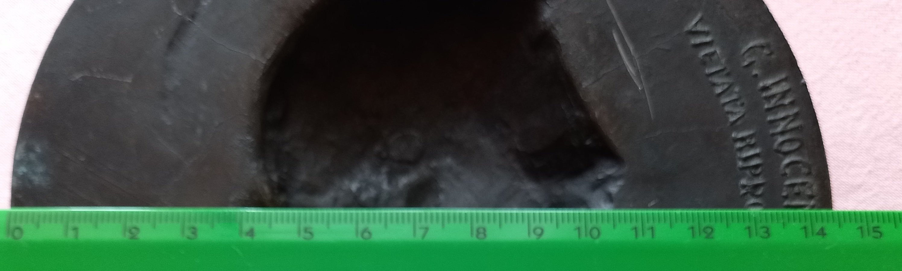 1933 - Uniface Volto di Cristo 145mm (1933) Placca uniface in AE, volto di Gesú anno Santo 1933 ditta G.Innocenti diametro 145 mm Verso | anonimo | Sun 16/05/21 - 13:23 | ||
