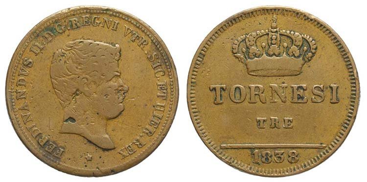 Tornese 1 e 1/2 (1838 - Napoli) Dritto | Nomisma | Sun 14/05/23 - 17:31 | ||