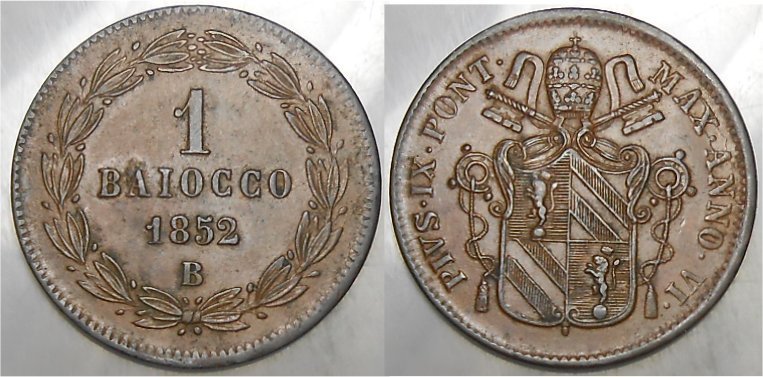 1 baiocco secondo periodo (1852 - Bologna) Entrambe le facce | Sat 14/02/15 - 13:41 | |||