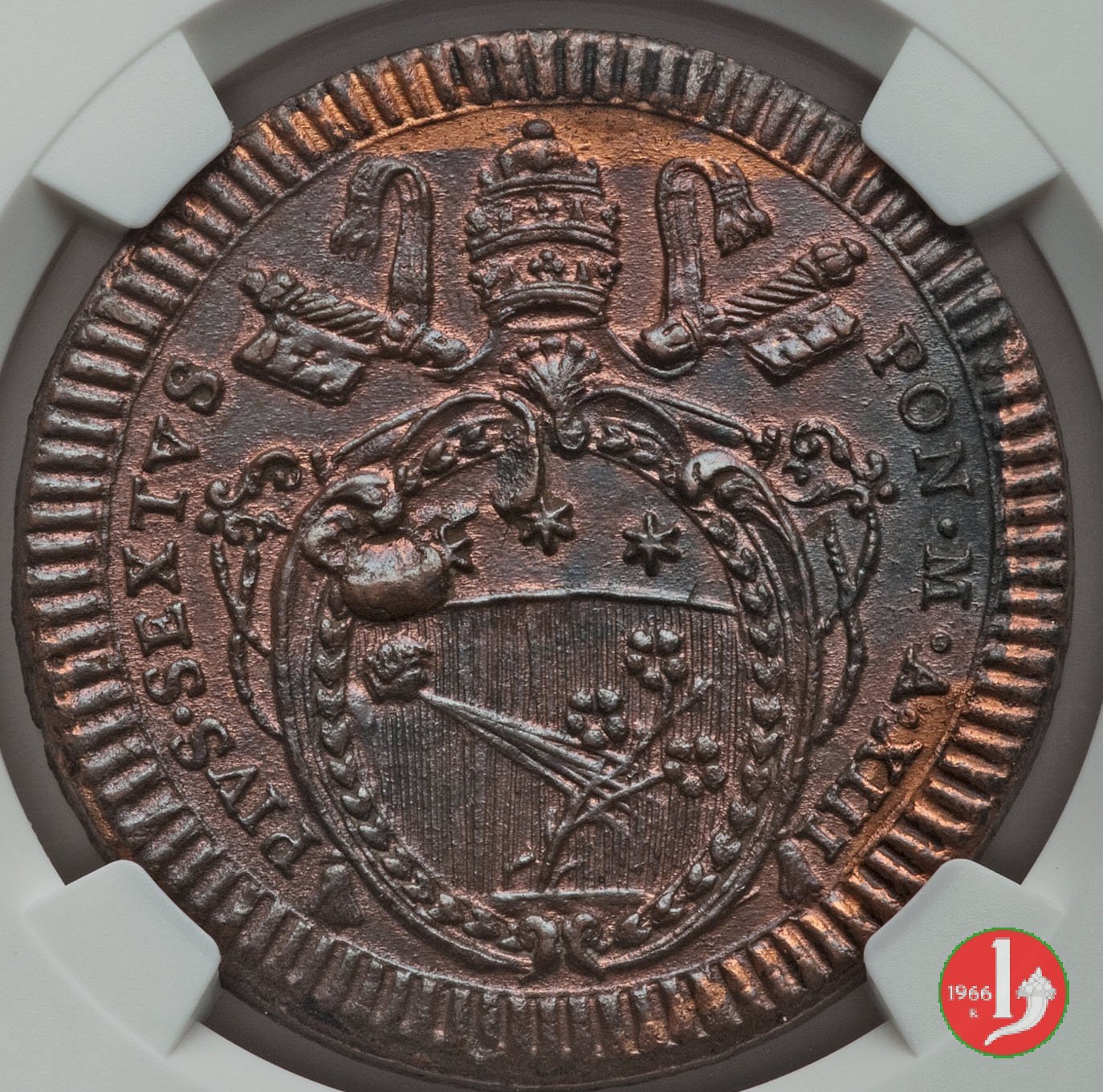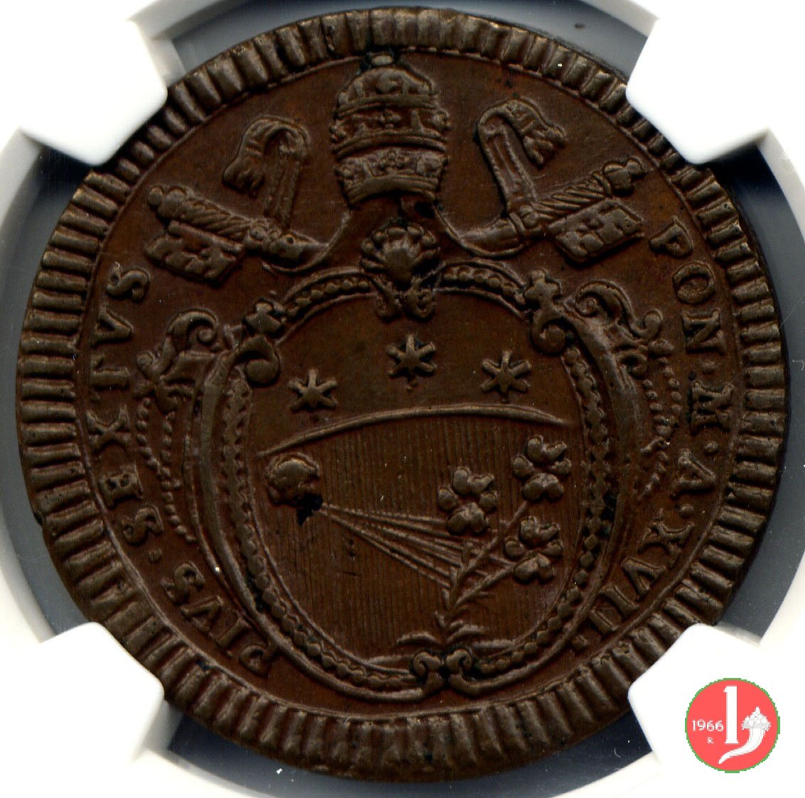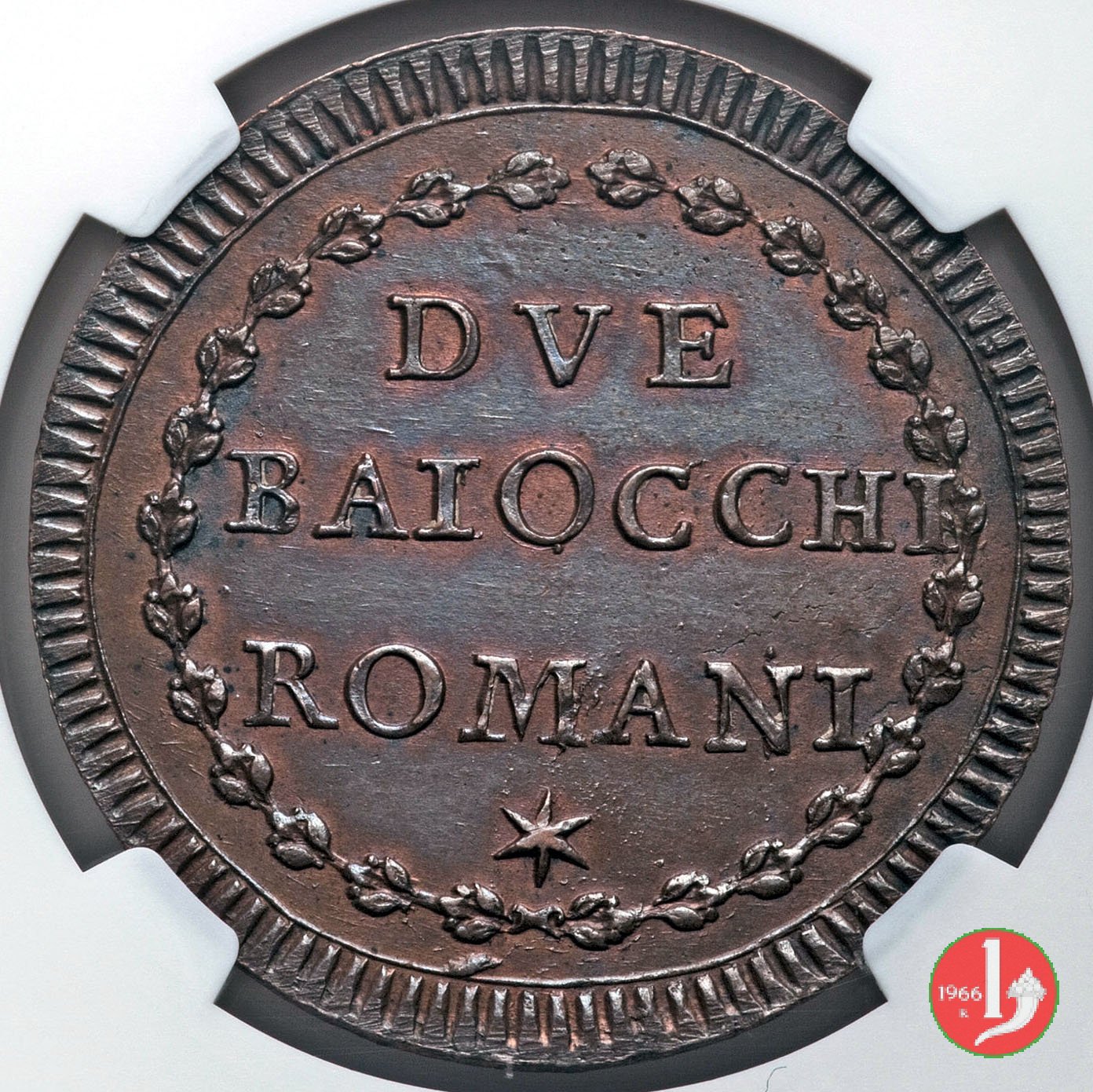 2 baiocchi del 1° tipo (A. XI - A. XXI) (1791-1792 - Roma) NGC MS 63 BN Verso | Thu 20/12/18 - 17:23 | |||