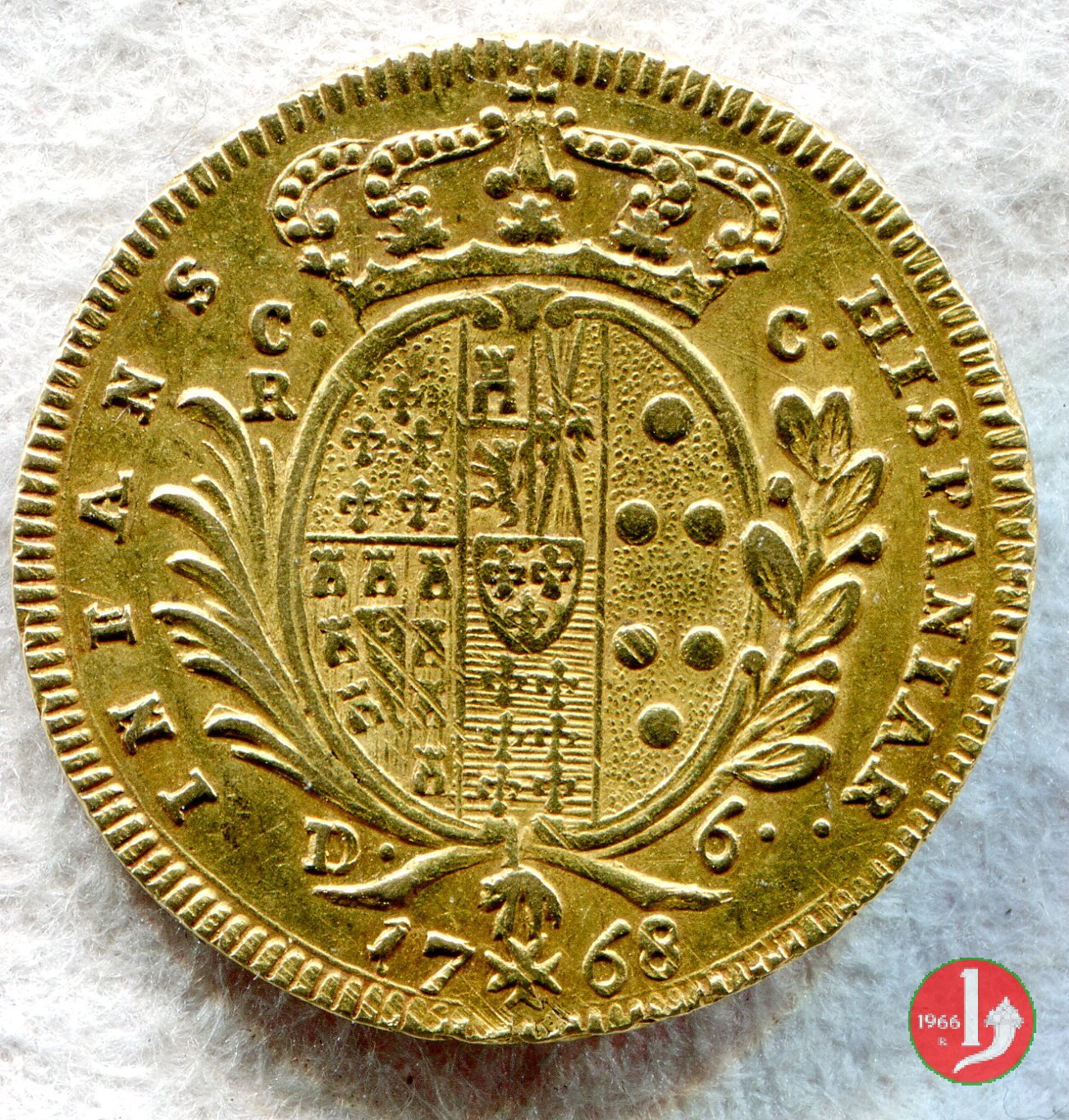 6 Ducati III tipo (1768 - Napoli) In questo anno ne furono coniati ben tre tipi ,il primo simile a quello del 1767 (busto da bambibo),il terzo simile a quello del 1869 (busto adulto giovane) e....soltanto questo mode ( busto adolescenziale con coroncine sul manto). Molto raro,dunque. Verso | Wed 15/05/19 - 16:01 | ||