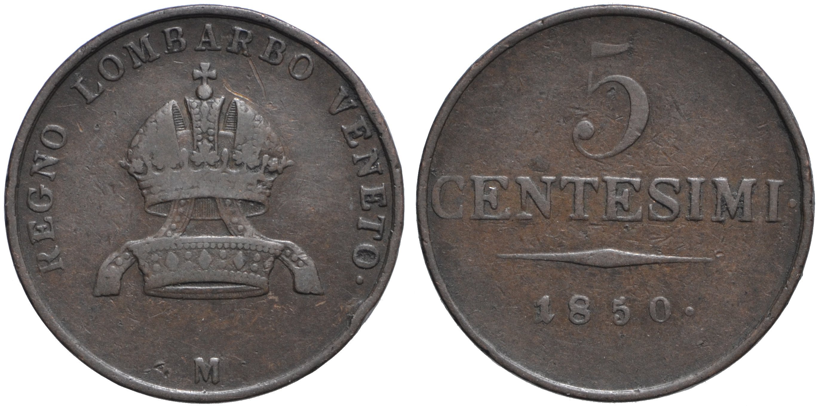 5 centesimi (1850 - Milano) variante con LOMBARBO | Wed 8/11/23 - 03:54 | |||