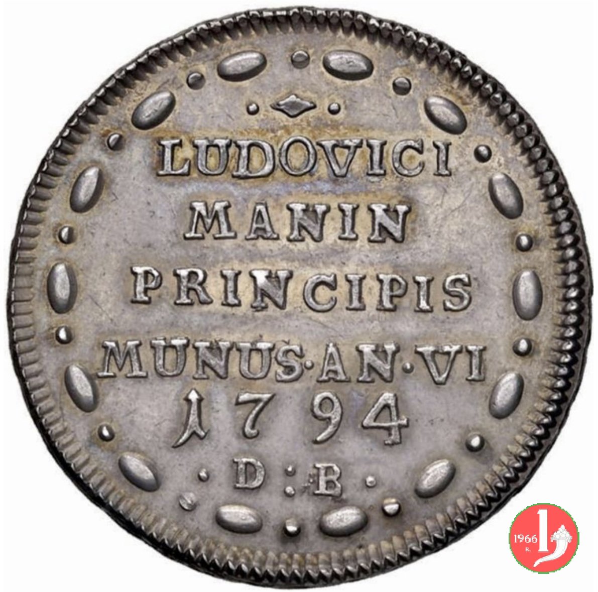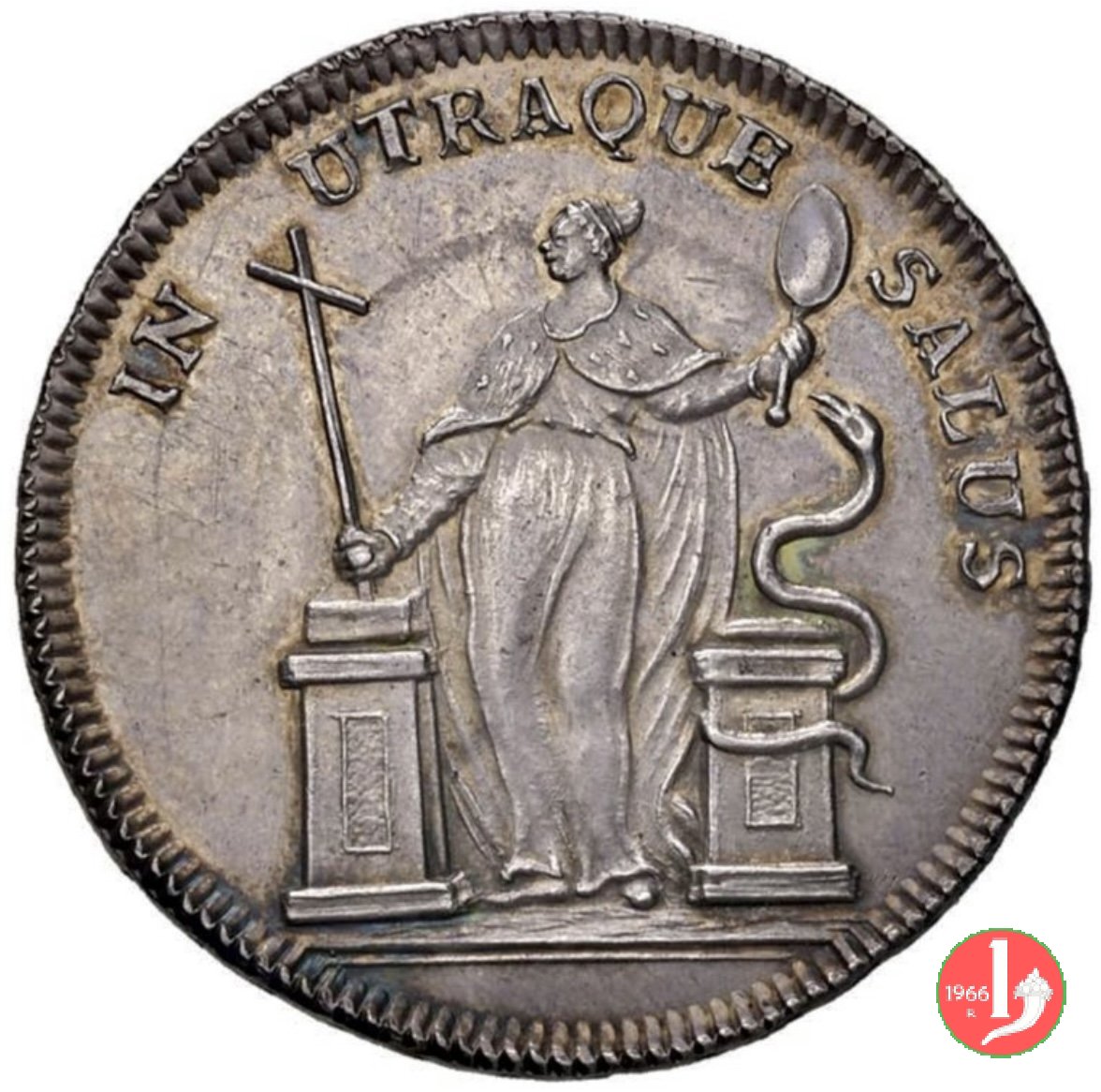 Osella 1794 di doppio peso (1794 - Venezia) Venezia in piedi col corno dogale in capo tra due are stringe nella destra una croce e nella sinistra uno specchio con una serpe attorcigliata. La croce simboleggia la fede, il serpente la saggezza, i due pilastri della Repubblica. Lo specchio in quanto superficie riflettente è il supporto di un simbolismo estremamente ricco: lo specchio riflette la sincerità, il con- tenuto del cuore e della coscienza, la verità. (Traina) Dritto | Mon 25/04/22 - 21:25 | |||