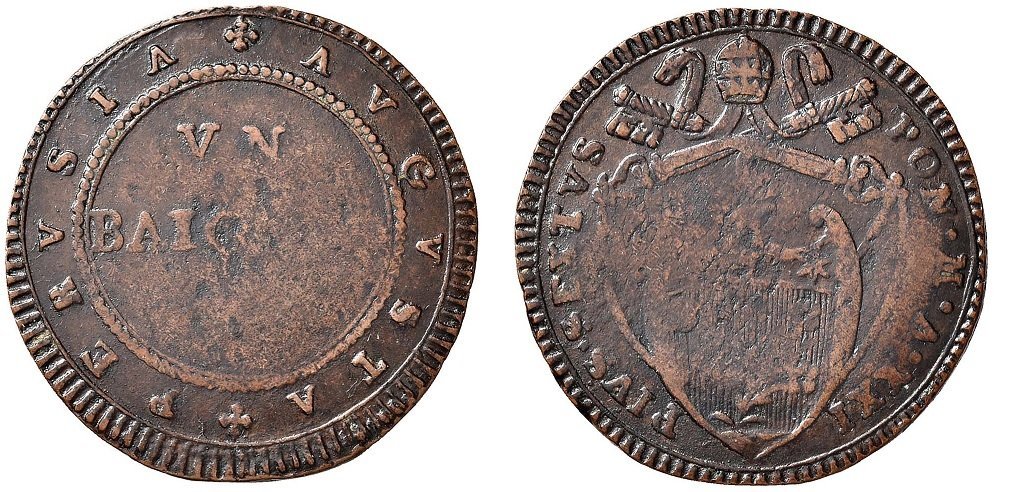 baiocco avgvsta pervsia (1795 - Perugia) Stemma appuntito in basso RARISSIMA. Entrambe le facce | anonimo | Sun 8/08/21 - 16:45 | ||