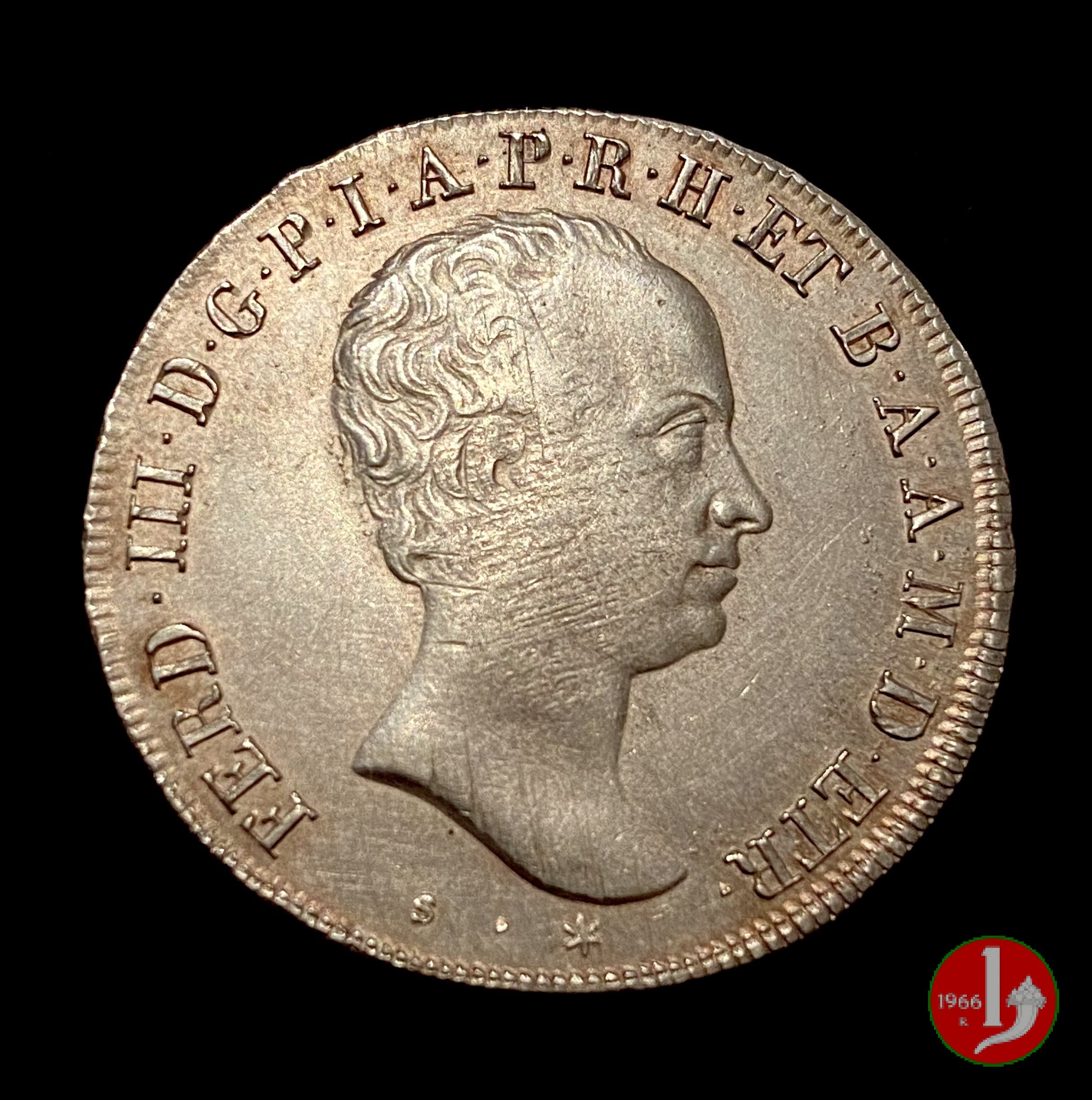 mezzo francescone seconda serie (testa grande) (1823 - Firenze) Collezione personale (SPL) (D) Dritto | Thu 21/10/21 - 18:20 | |||