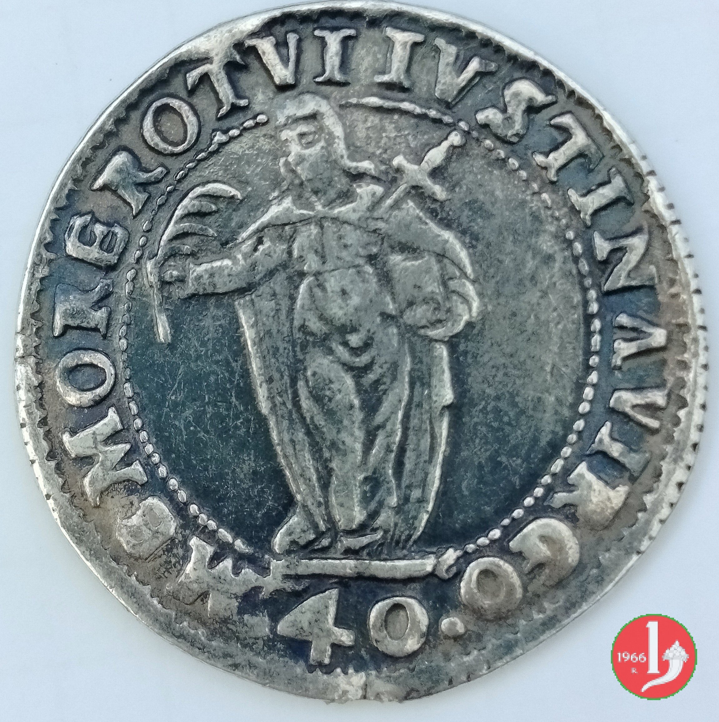 40 soldi con Santa Giustina (1577-1578 - Venezia) Tracce di appiccagnolo Dritto | Thu 15/05/25 - 13:48 | |||