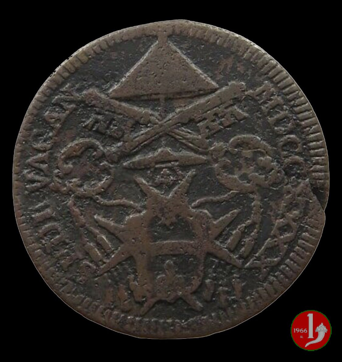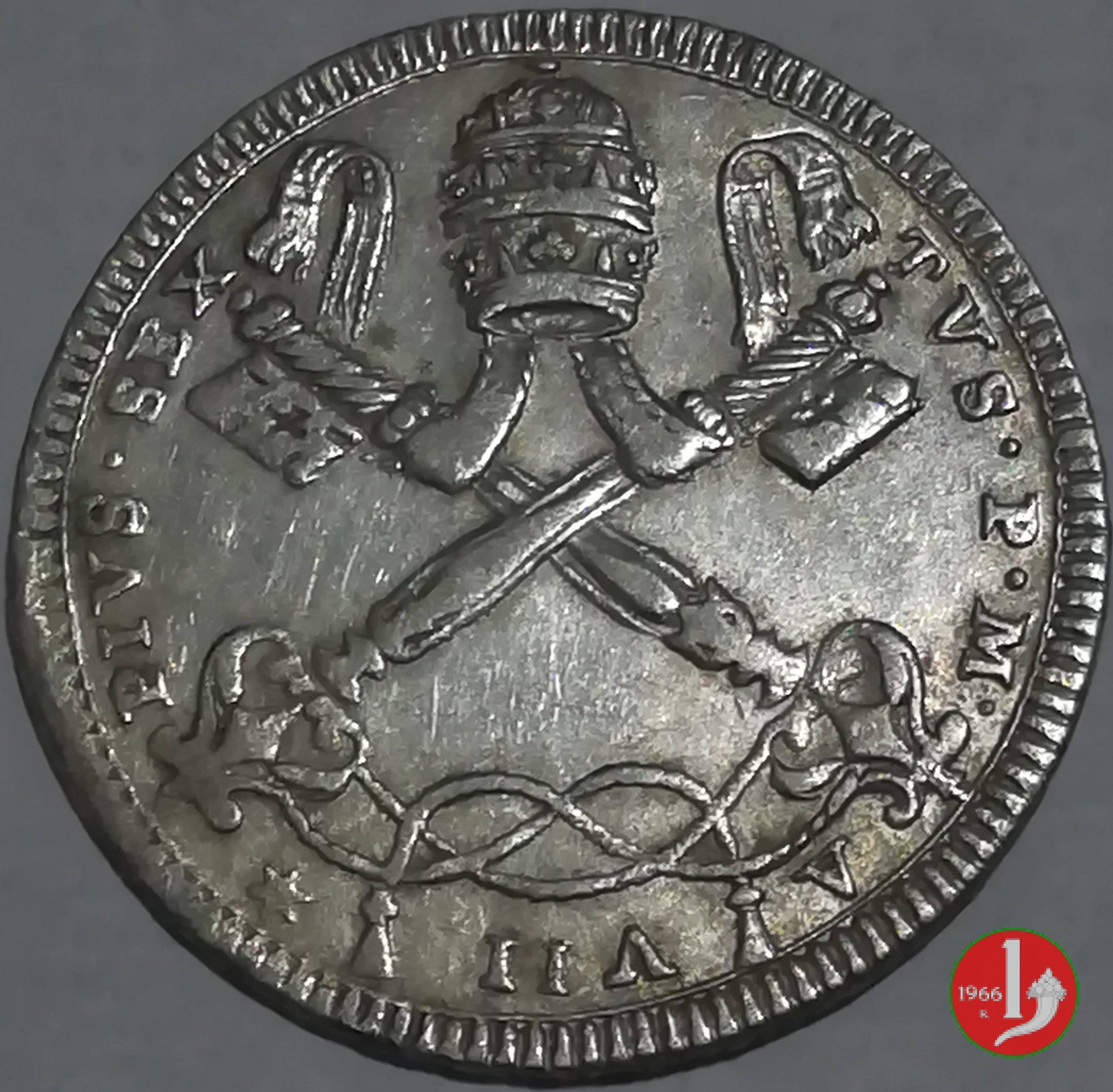 60 baiocchi (1796 - Roma) Variante con chiavi decussate non legate fra loro e senza cordoni passanti posteriormente lo stemma al D/ Contorno | Wed 22/01/20 - 19:53 | |||
