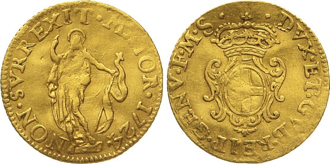 1/2 zecchino (1724 - Genova) Asta Varesi 63, lotto 206 (B) Entrambe le facce | Numismatica Varesi | Mon 27/05/24 - 16:29 | ||
