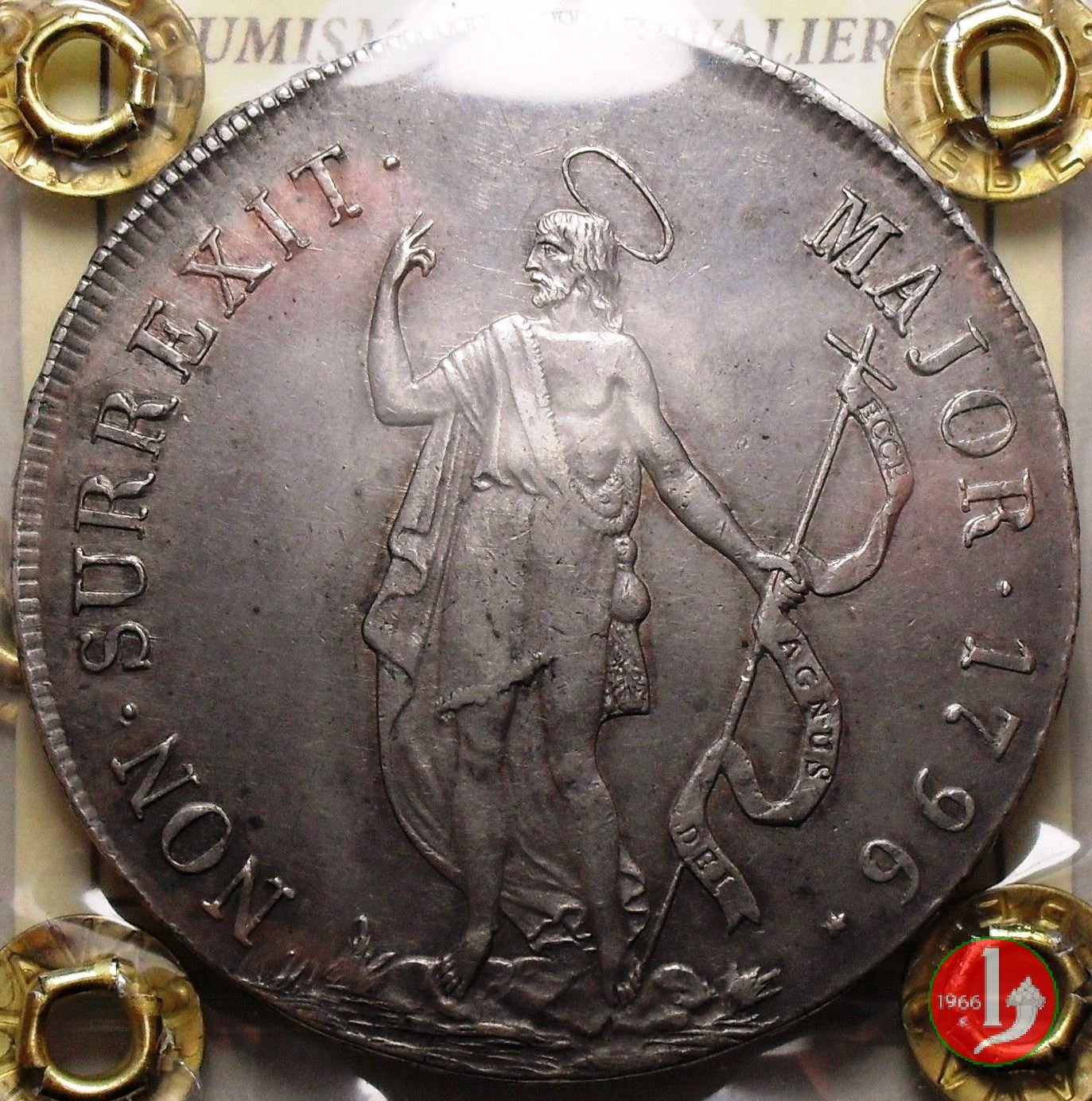 8 lire nuove (1796 - Genova) 8 Lire Nuove, Repubblica di Genova, Periodo dei Dogi Biennali, III Fase, 1796* (AG con San Giovanni Battista), Sigillata NIP F. Cavaliere SPL Ottimo. Verso | Fri 12/02/16 - 20:02 | |||