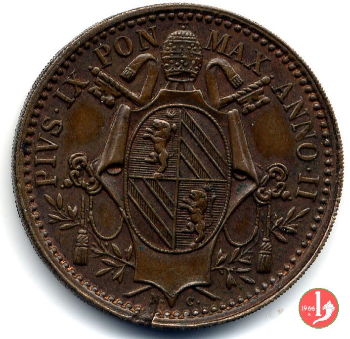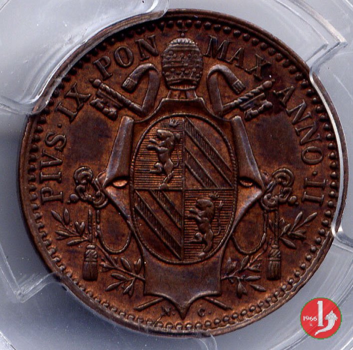 1/2 baiocco (1848 - Bologna) ANNO • II e 8 ribattuto su 7 pcgs ms 63 bn Dritto | Sat 26/12/15 - 17:46 | |||