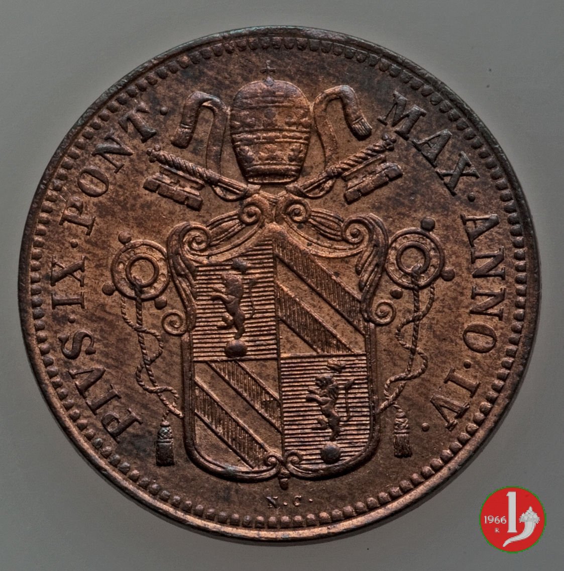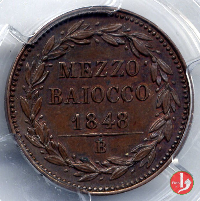 1/2 baiocco scudo a targa (1850 - Roma) senza N.C. e R normale PCGS MS 64 RB Dritto | Sat 26/12/15 - 18:08 | |||