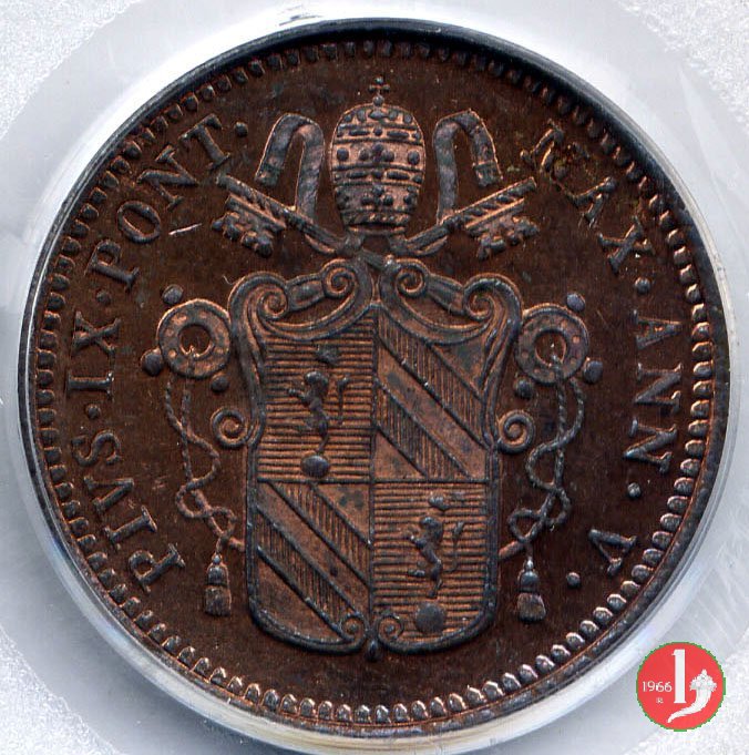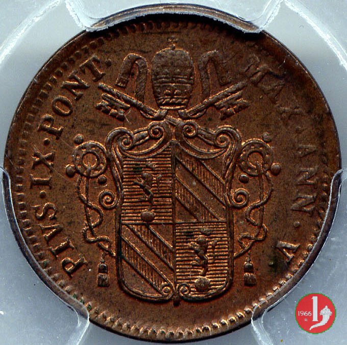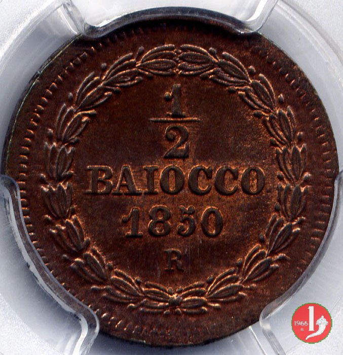 1/2 baiocco scudo a targa (1850 - Roma) senza N.C. e R normale PCGS MS 64 RB Verso | Sat 26/12/15 - 18:08 | |||