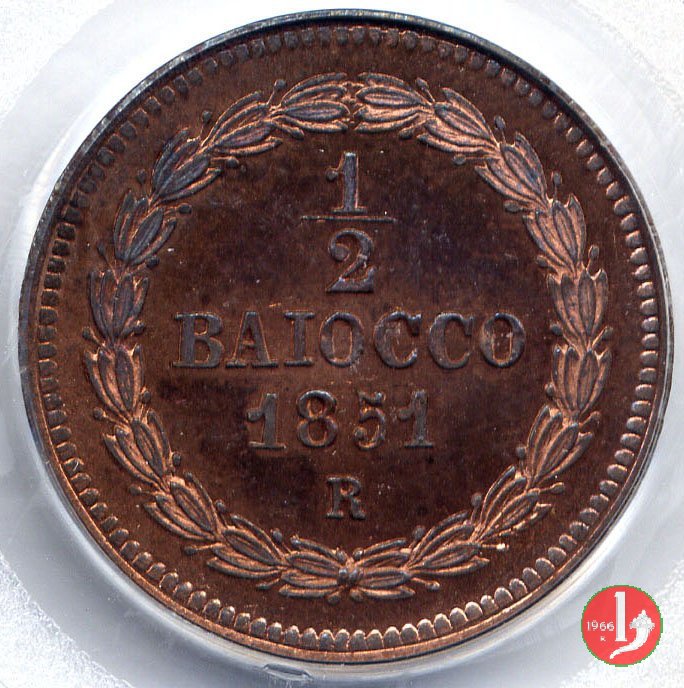 1/2 baiocco scudo a targa (1851 - Roma) uno dei rari esemplari Proof PCGS PR 64 RB Verso | Sat 26/12/15 - 18:14 | |||