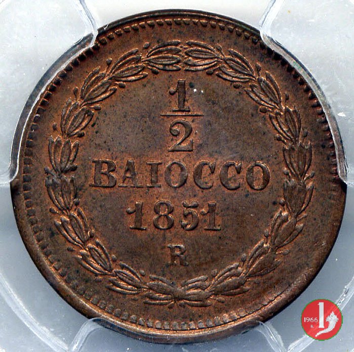 1/2 baiocco scudo a targa (1851 - Roma) PCGS MS 63 BN Dritto | Sat 26/12/15 - 18:15 | |||