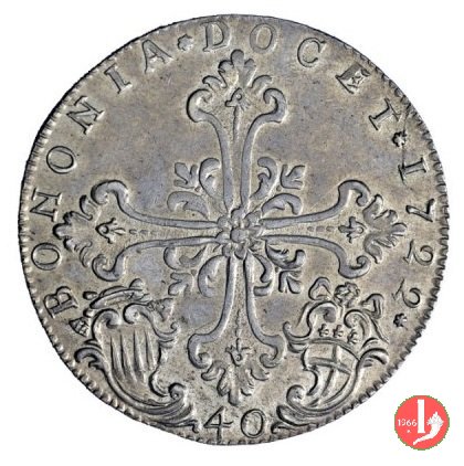 Mezzo scudo da 2 lire (1722 - Bologna) Ex asta NAC 89 - 29/11/2015 - Lotto 574 Real. 8500 euro (R) Verso | NAC Numismatica Ars Classica | Sun 6/12/15 - 14:07 |