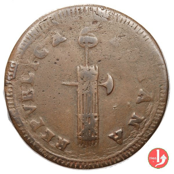 due baiocchi (1798) (1798 - Pergola) Asta Internazionale del Titano 15 - lotto 870 (moneta fotografata Bruni 5) Verso | Fri 22/12/23 - 18:21 | |||