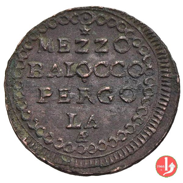 mezzo baiocco (2° tipo) (1798 - Pergola) Bertolami web auction 69 - lotto 813 Verso | Bertolami Fine Art | Fri 22/12/23 - 22:03 | ||