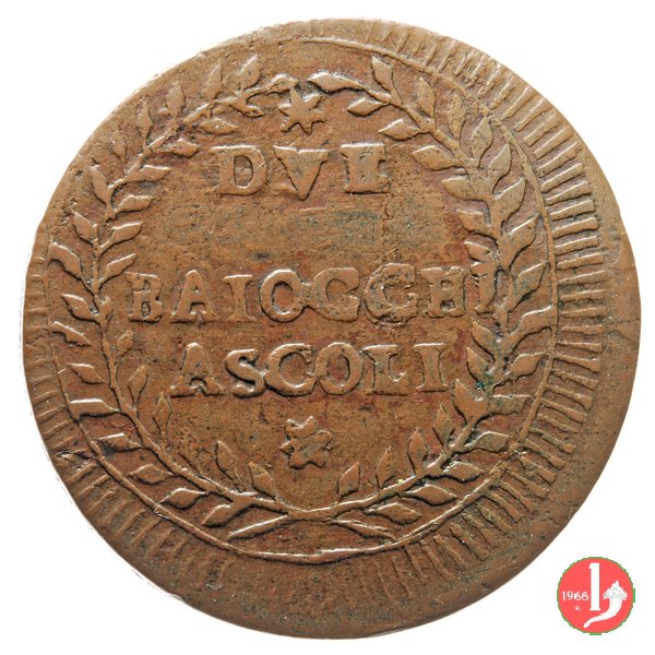 due baiocchi (1798-1799 - Ascoli) [AS] (Moneta fotografata Bruni 8) Negrini 2 - lotto 969 Dritto | Fri 8/12/23 - 18:35 | |||