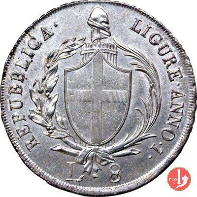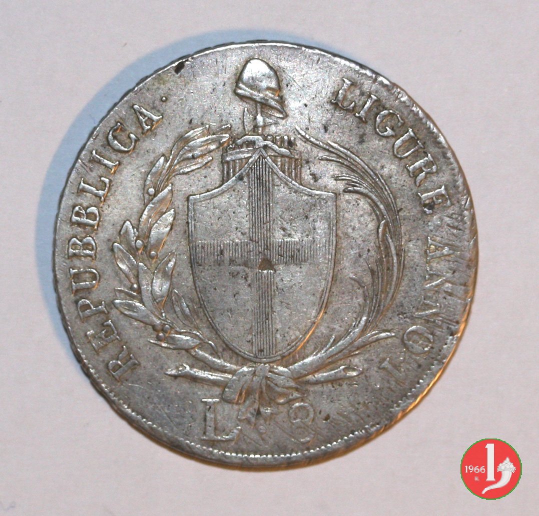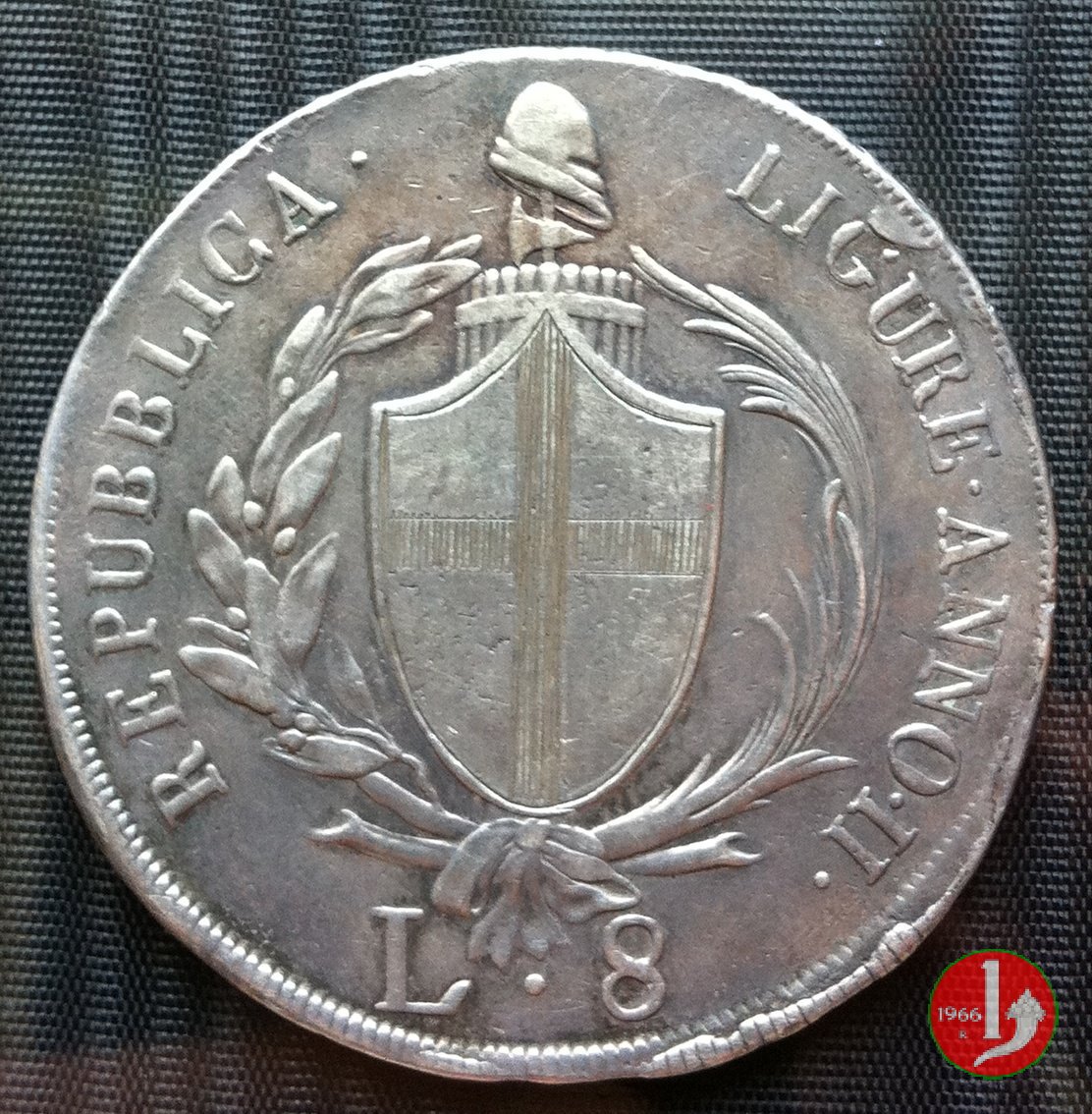 8 lire (1799 - Genova) 8 Lire AG, Repubblica Ligure, Anno II, 1799, Sigillata NIP P.P. Testa Verso | Fri 12/02/16 - 20:05 | |||