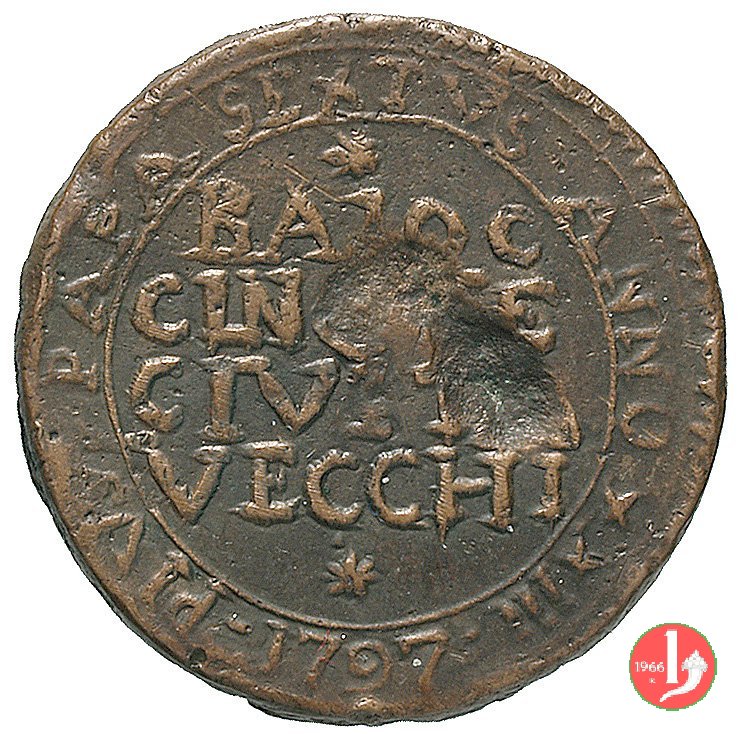 due baiocchi (A. VII R) (1799 - Perugia ?) InAsta 20 - lotto 1655 (è la moneta fotografata Bruni 5) Dritto | InAsta | Wed 10/09/08 - 14:00 | ||