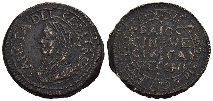 due baiocchi (con "REP. ROM. ANCONA") (1799 - Ancona) Artemide XLVII - lotto 531 Dritto | Artemide Aste | Sun 8/10/17 - 16:22 | ||