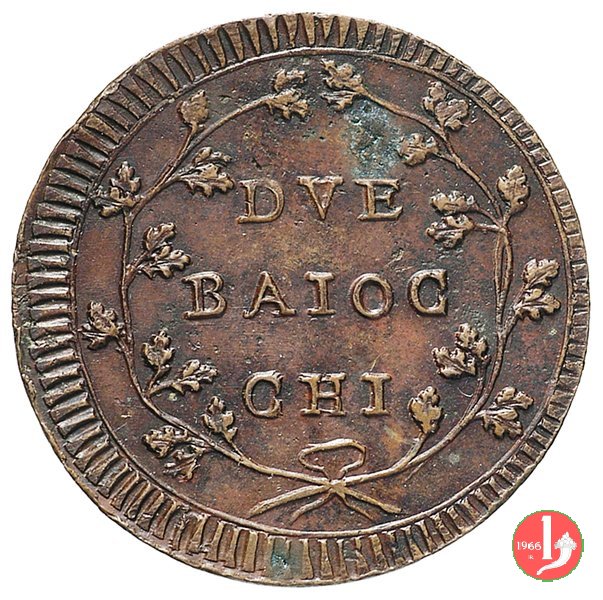 due baiocchi (con lettera "R") (1798-1799 - Roma) Varesi 58 - lotto 735 Dritto | Numismatica Varesi | Tue 17/05/11 - 23:10 | ||