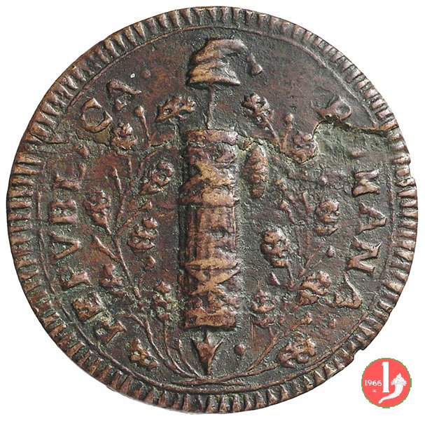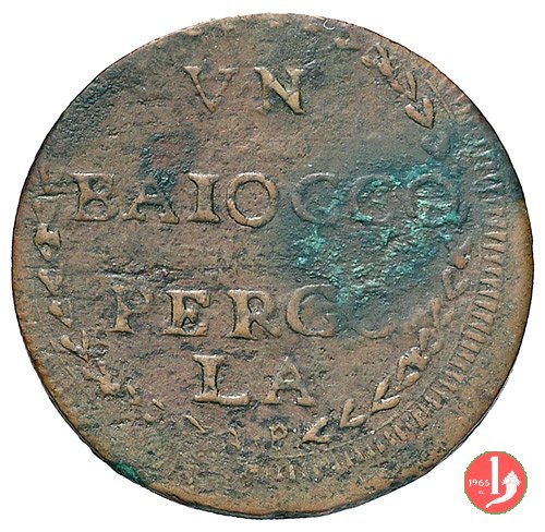 un baiocco (2° tipo) (1798 - Pergola) Ranieri 7 - lotto 660 Verso | Numismatica Ranieri | Fri 28/11/14 - 17:49 | ||